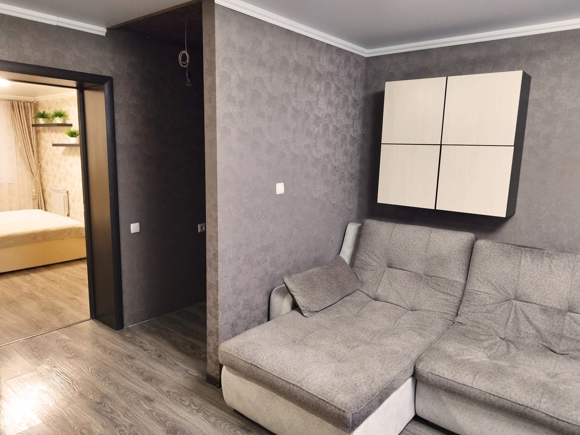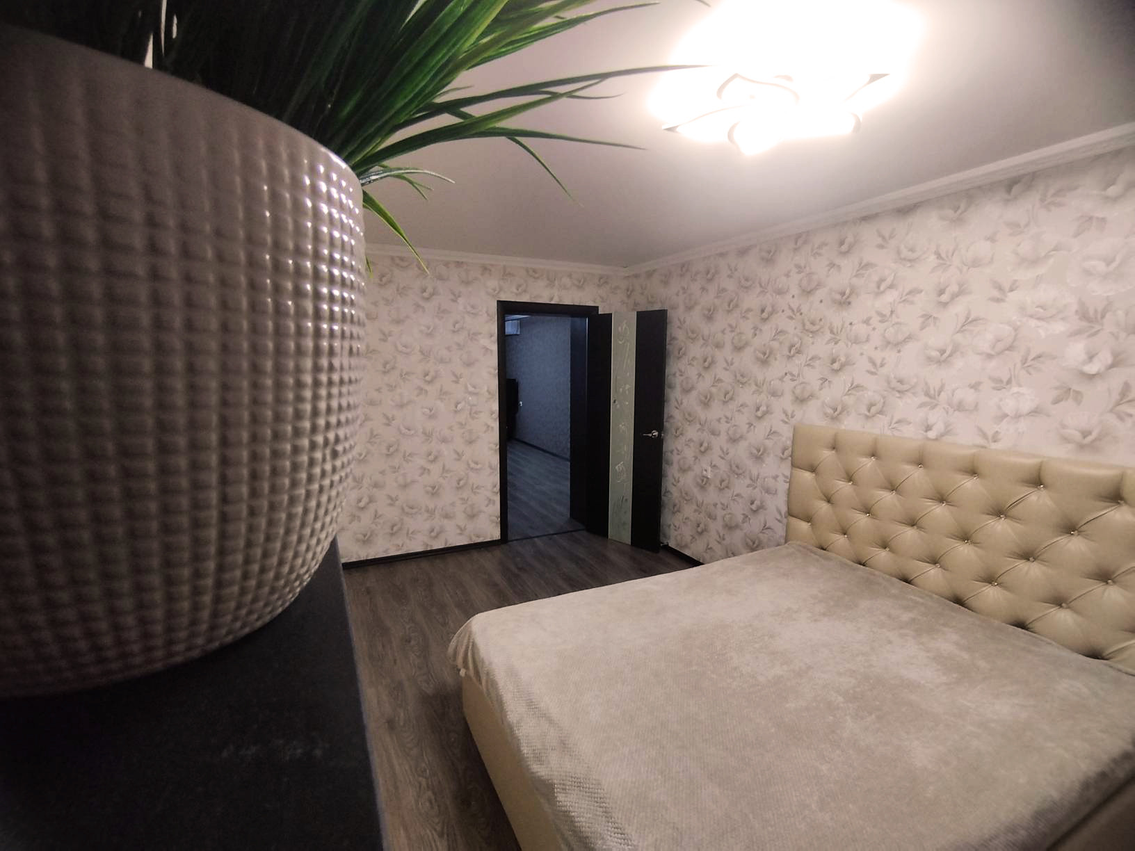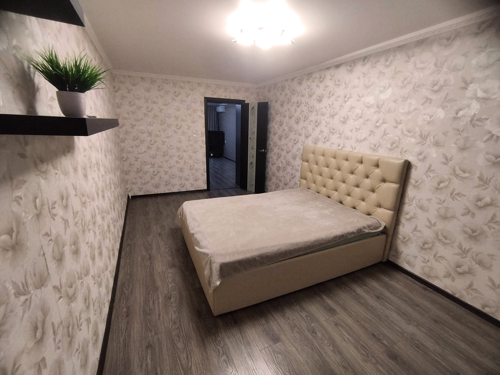 Из просторного коридора можно попасть в уютную спальню, где Вас уже ждет удобная кровать. Окна ее выходят на современный детский сад.