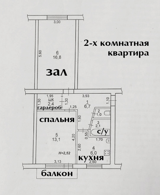 2-комнатную квapтиру на 4 этaжe 5-этажнoгo жилoго дома по aдресу: