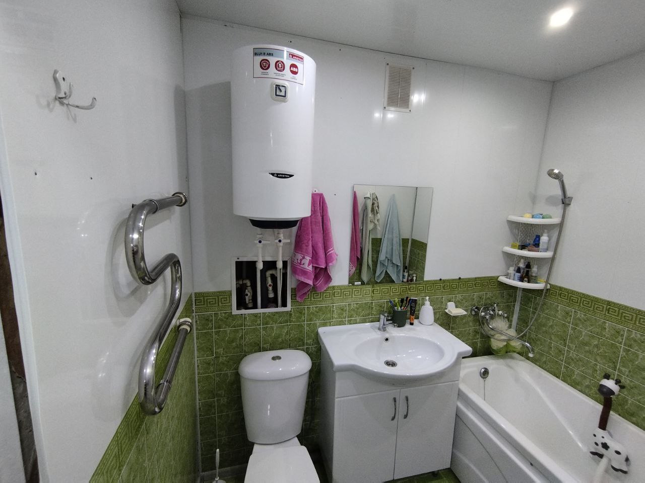 В зале мощная сплитсистема для комфортной температуры. В коридоре за дверями-купе мечта хозяйки - гардеробная комната. Дом теплый. На всякий случай в ванной установлен водонагреватель (мало ли летом отключат горячую воду на плановый ремонт).