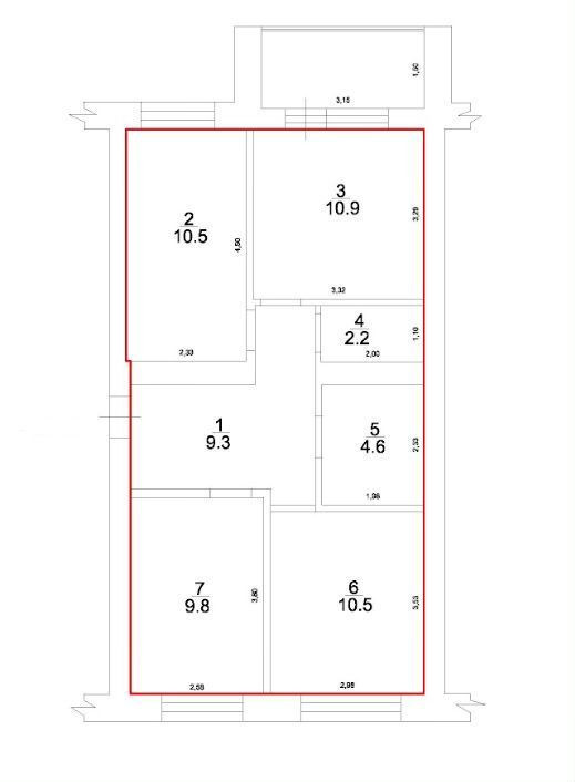 Общая площадь 57.8 м2