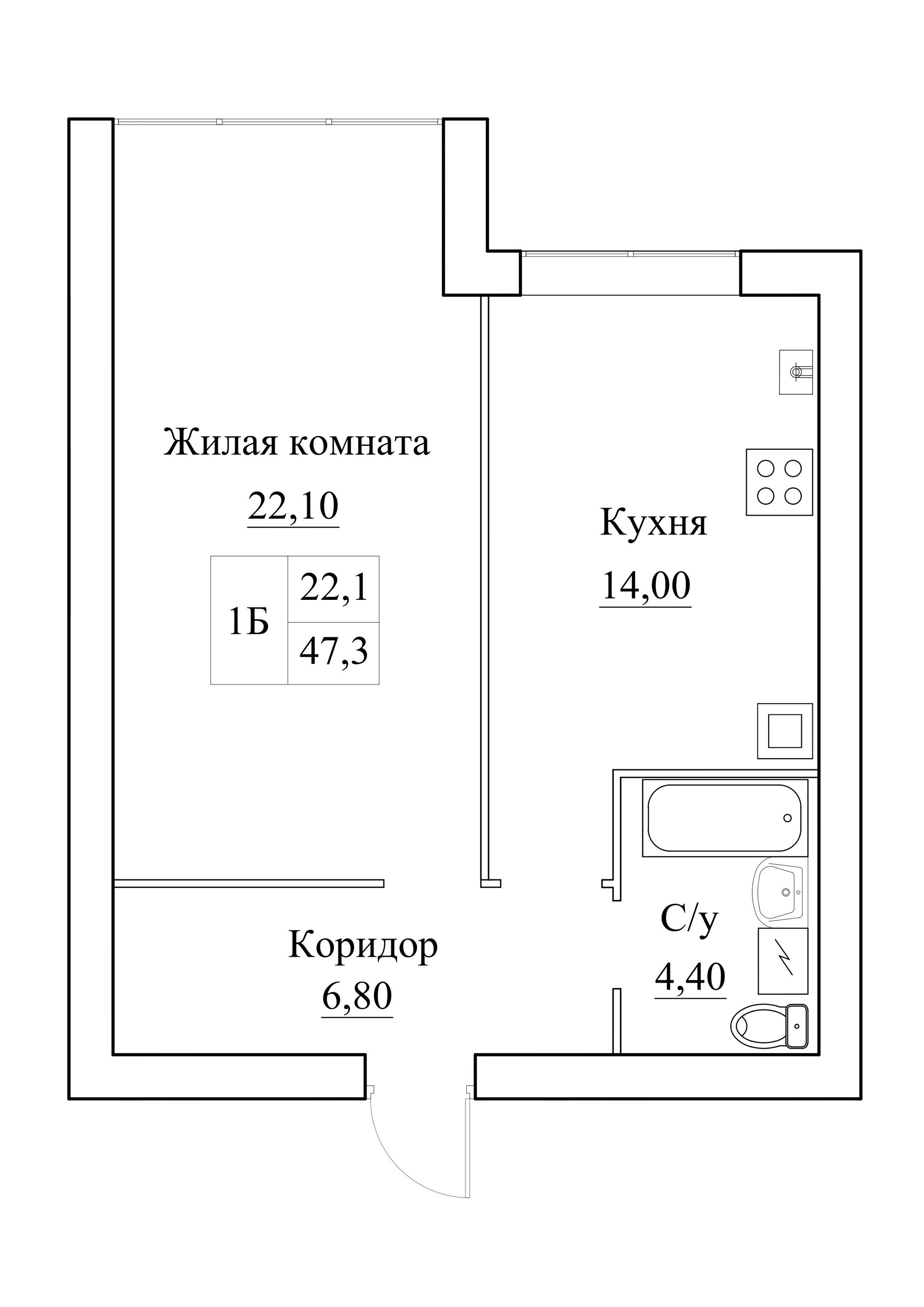 Жилая площадь 22 м2
