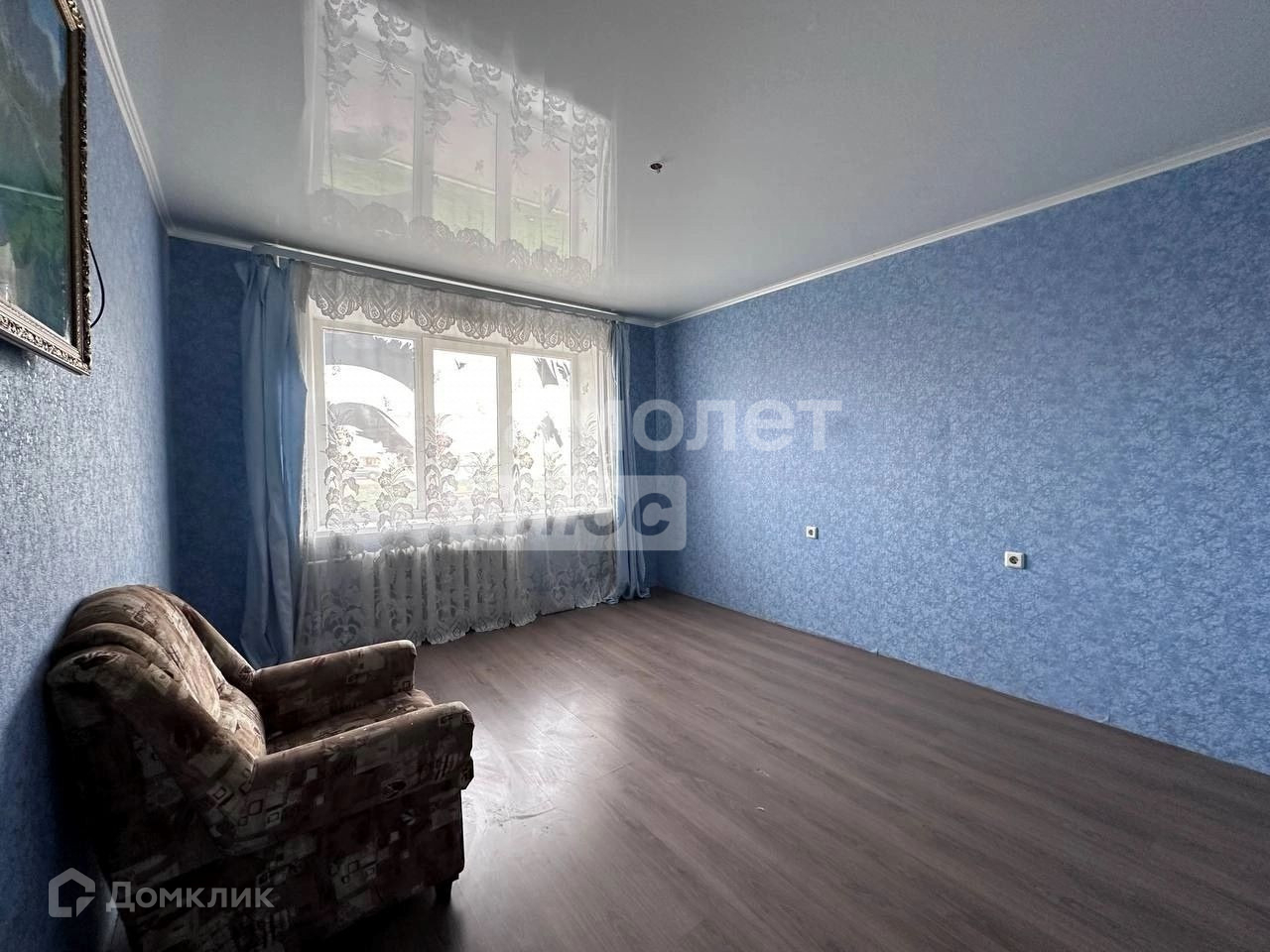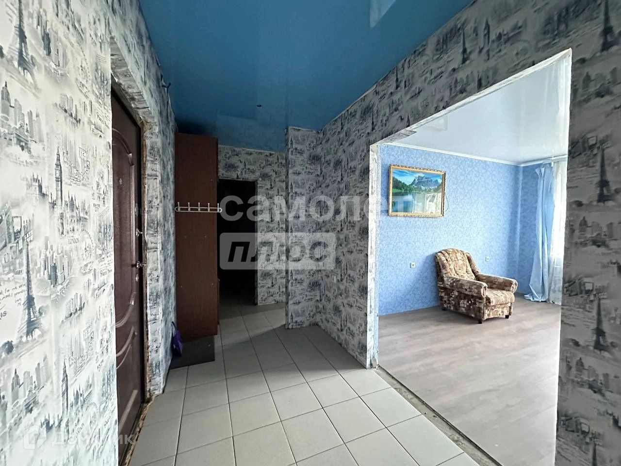 В комнате и коридоре натяжные потолки.