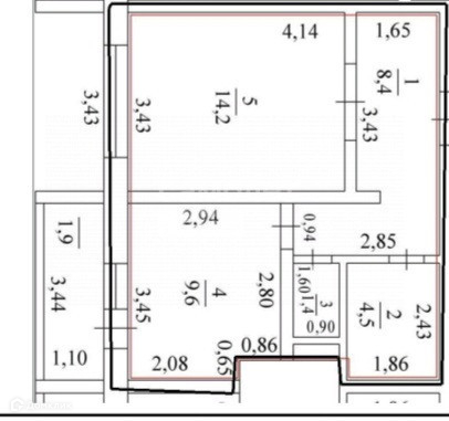 Жилая площадь 14.2 м2