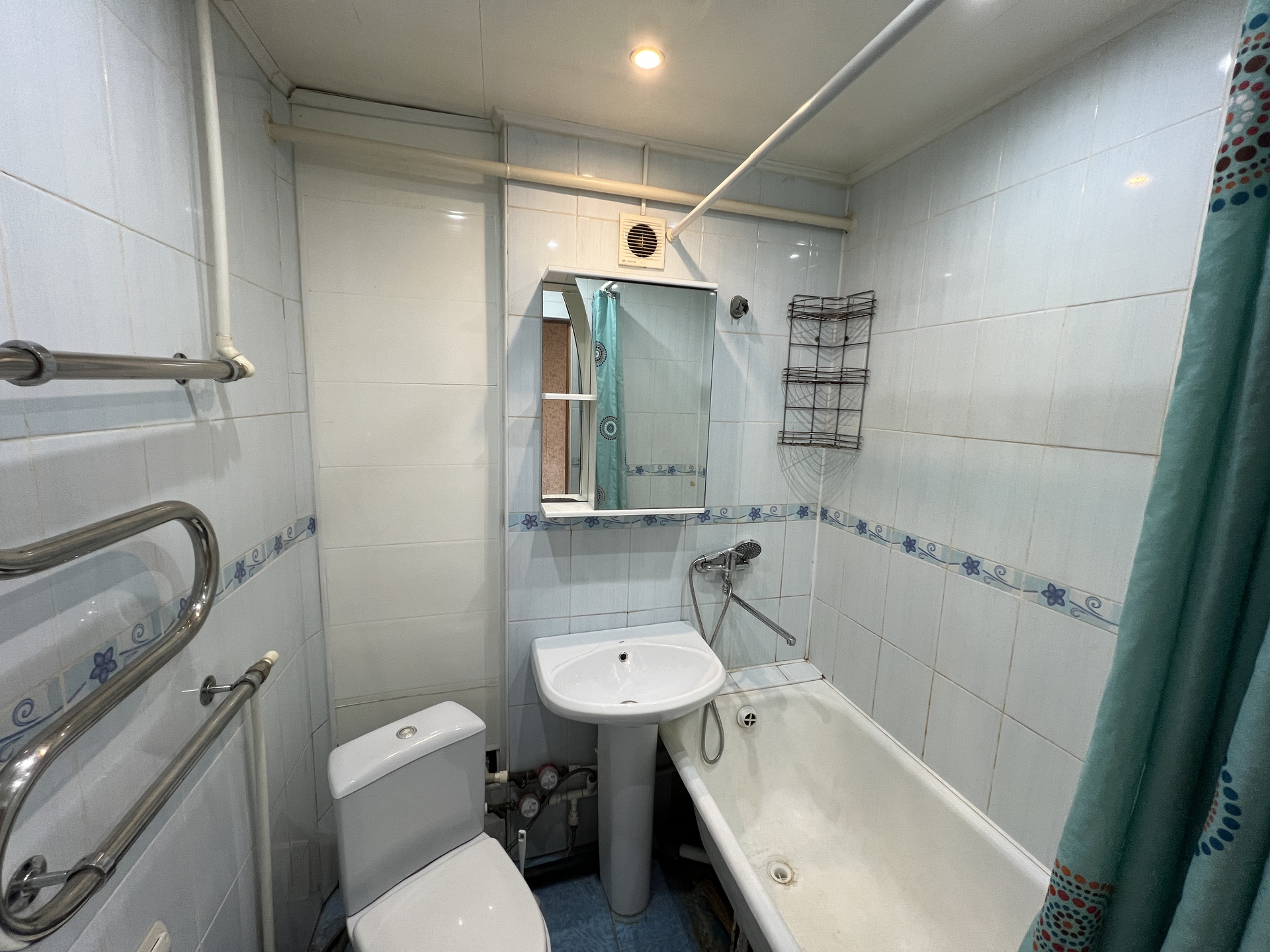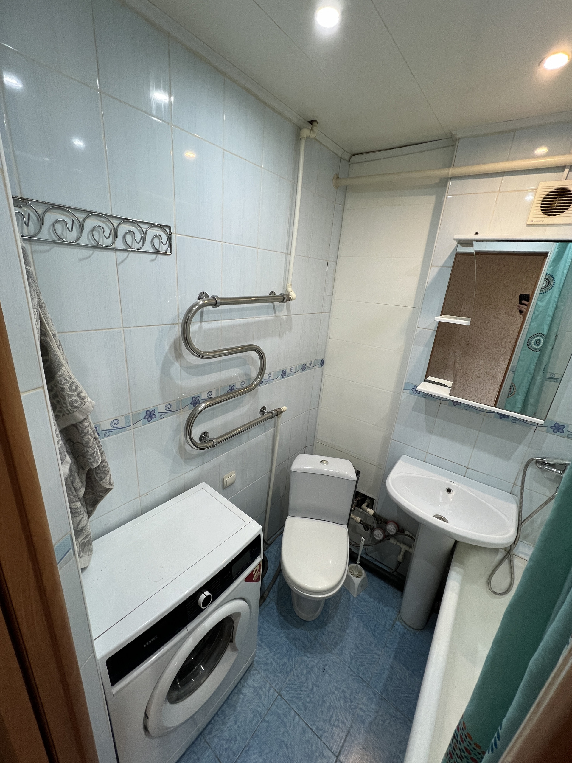 совмещённый с/у, выложен плиткой и есть место под стиральную машинку