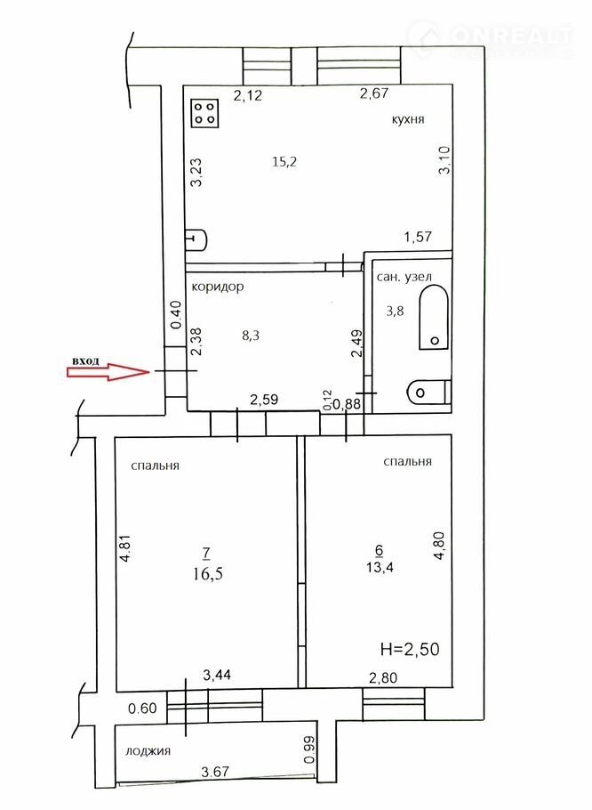 Общая площадь 57.2 м2