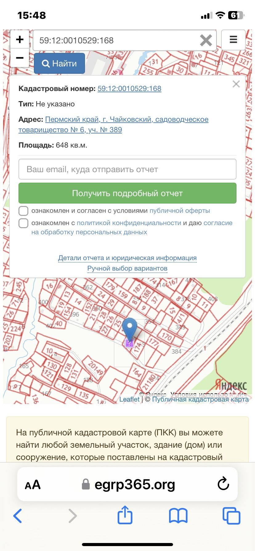 Площадь участка 648 сот.