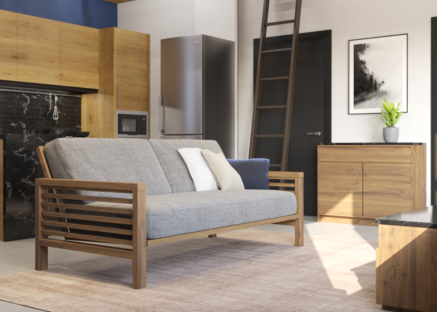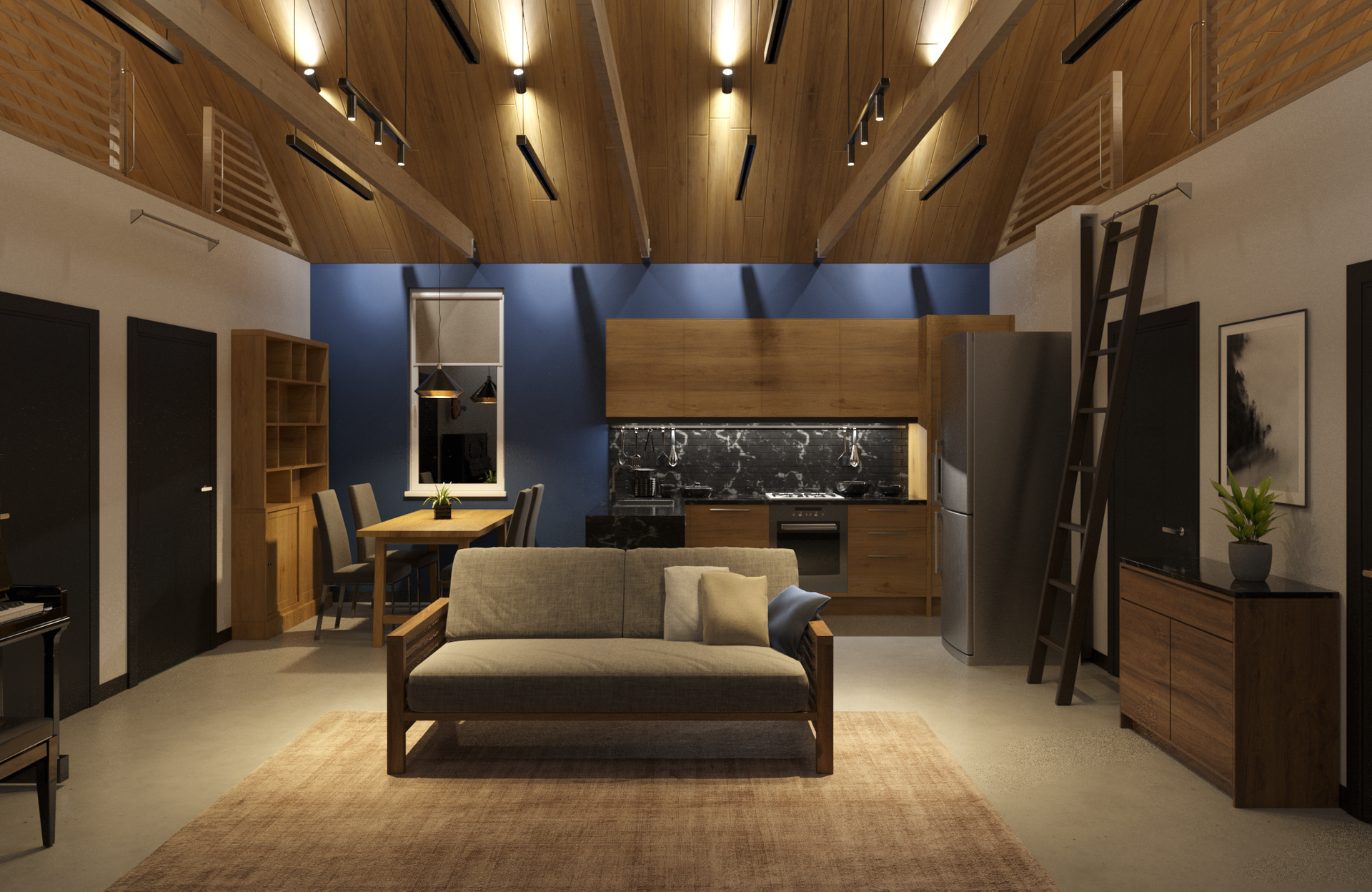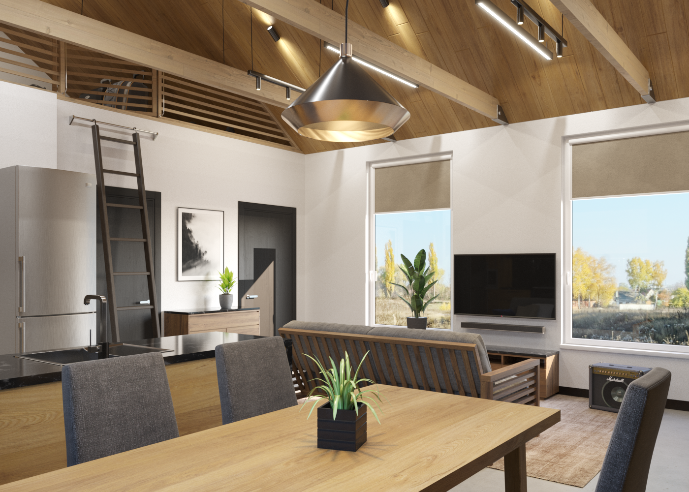 Большая кухня-гостиная для приёма самых дорогих и близких людей.  Две спальные комнаты. Совмещённый санузел.