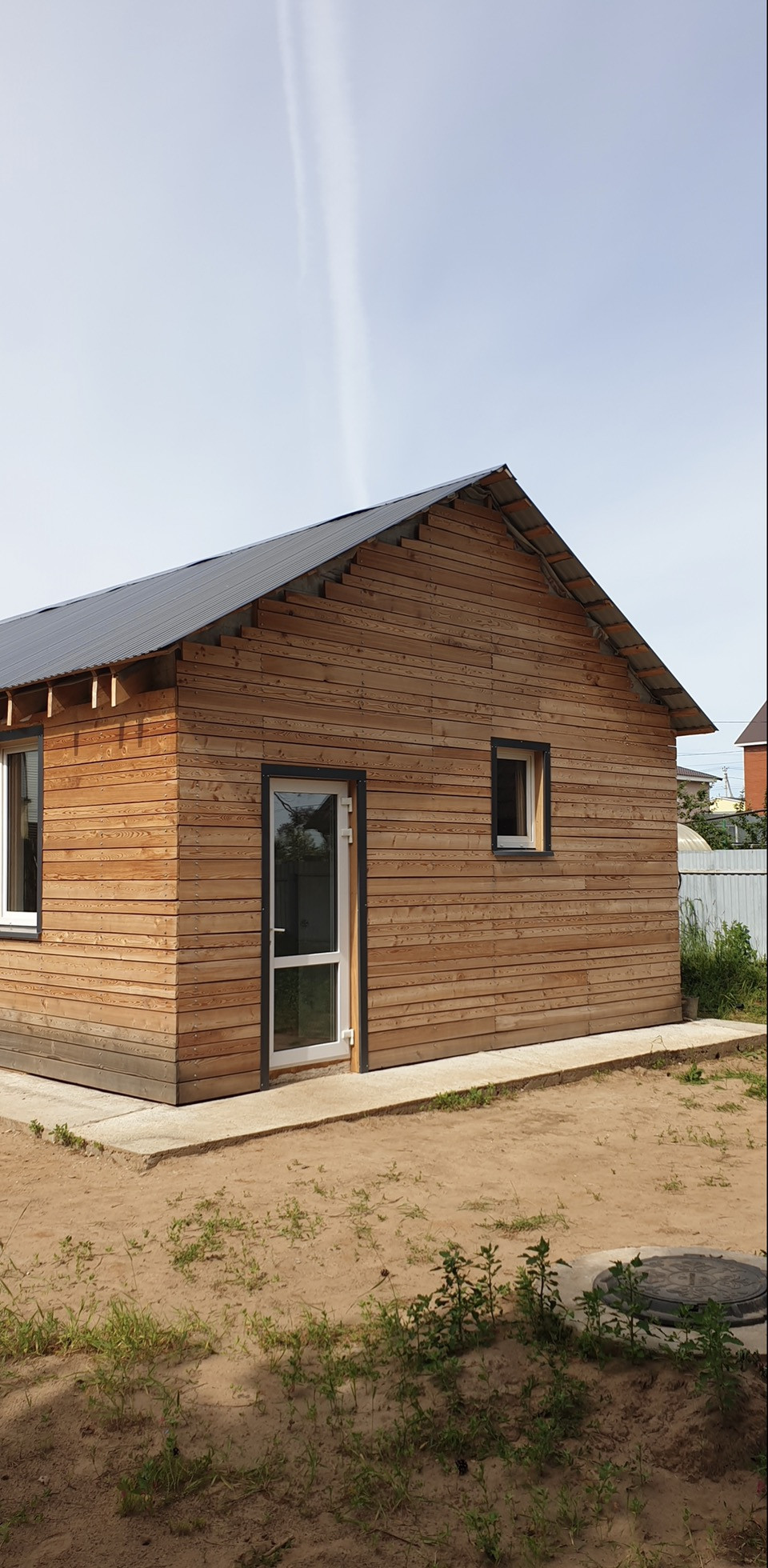 Стены керамзит-бетонный блок, утепление 100. Большие окна, много света и воздуха. Тёплые полы.