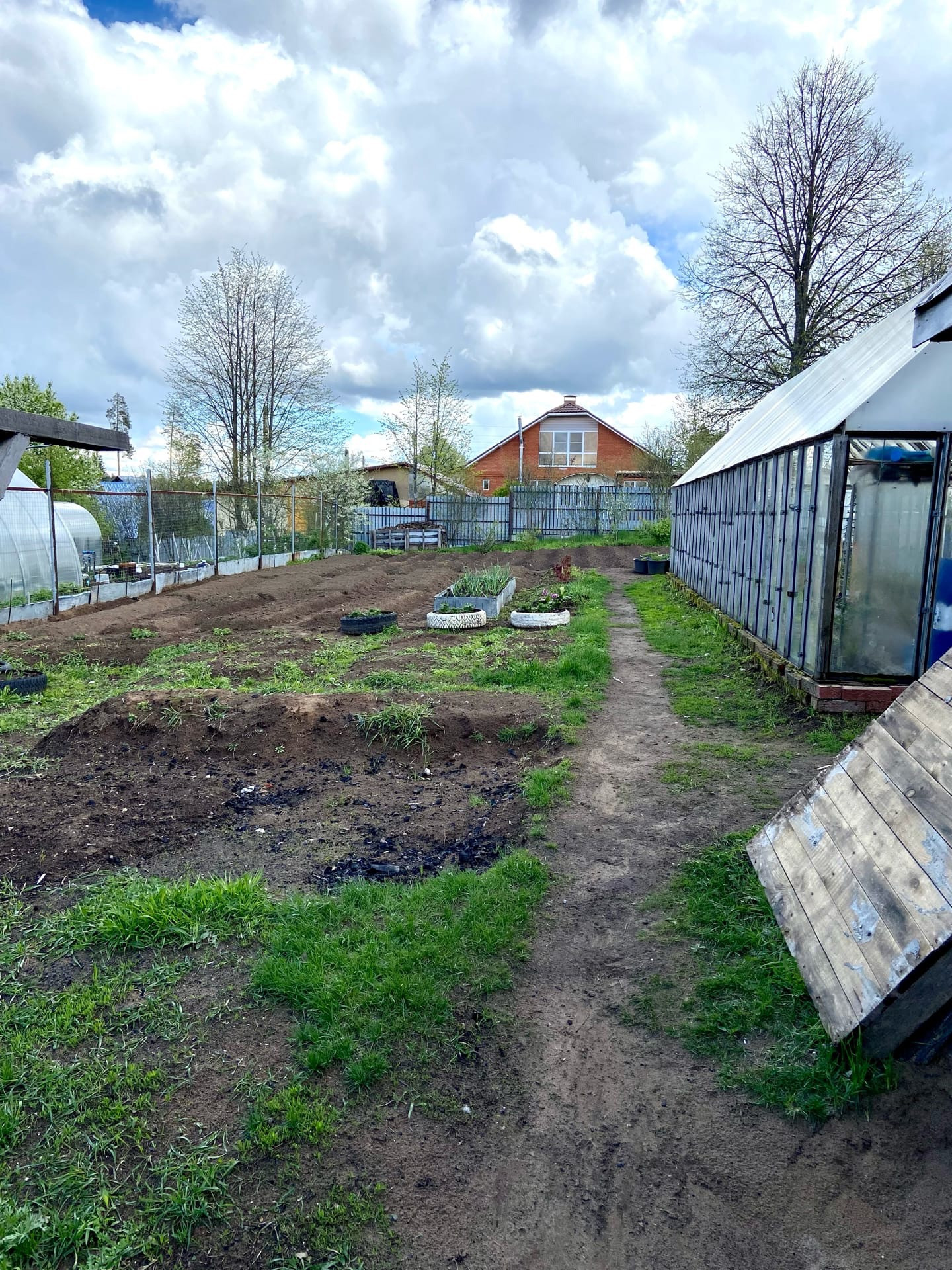 Есть погреб для хранения овощей. Большая теплица, участок ухоженный, есть все посадки.
