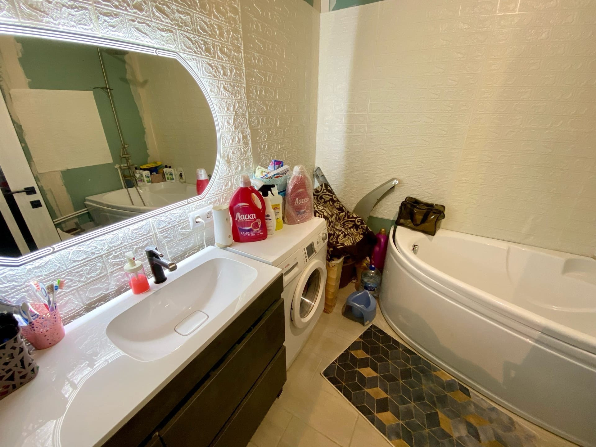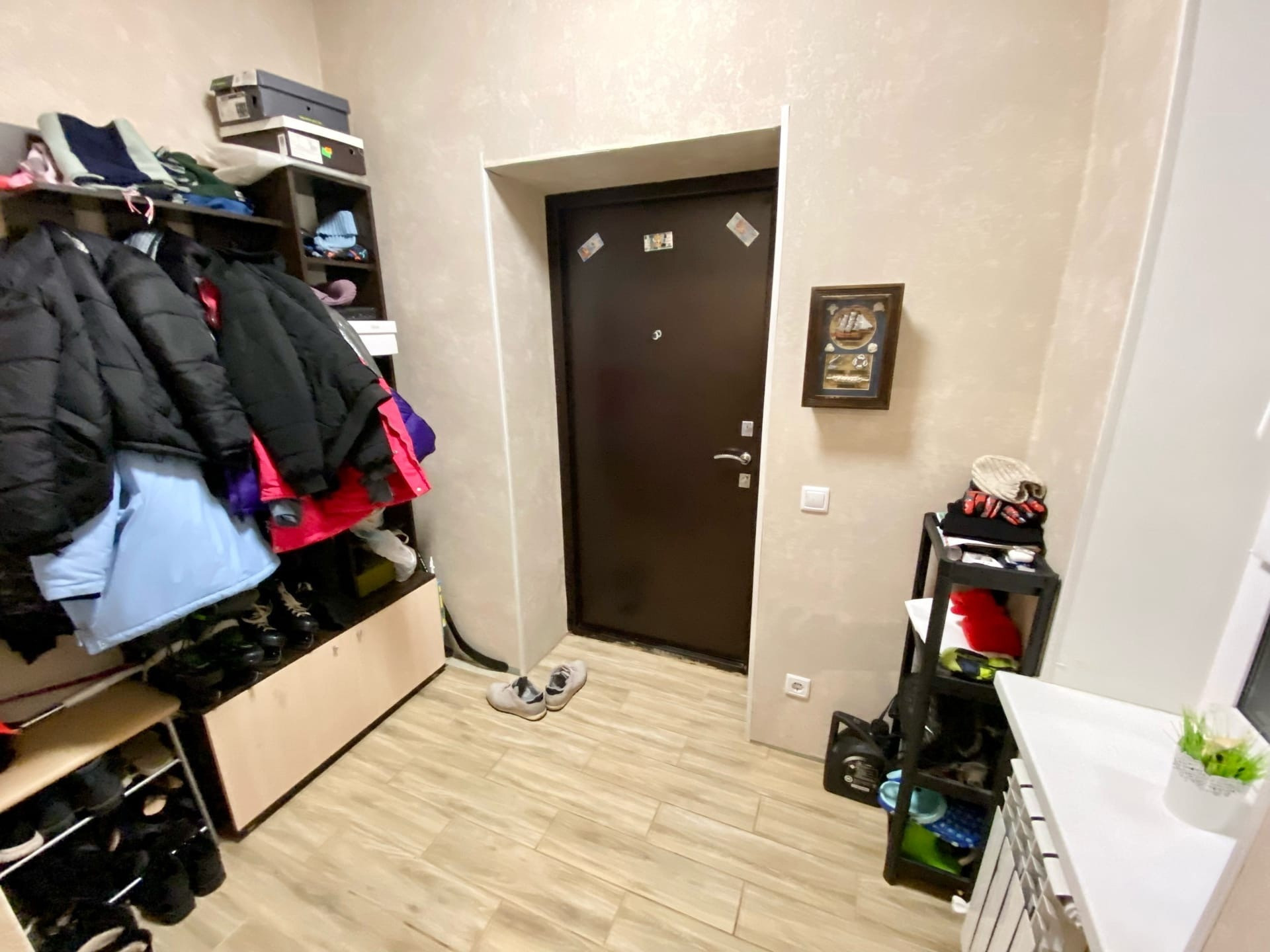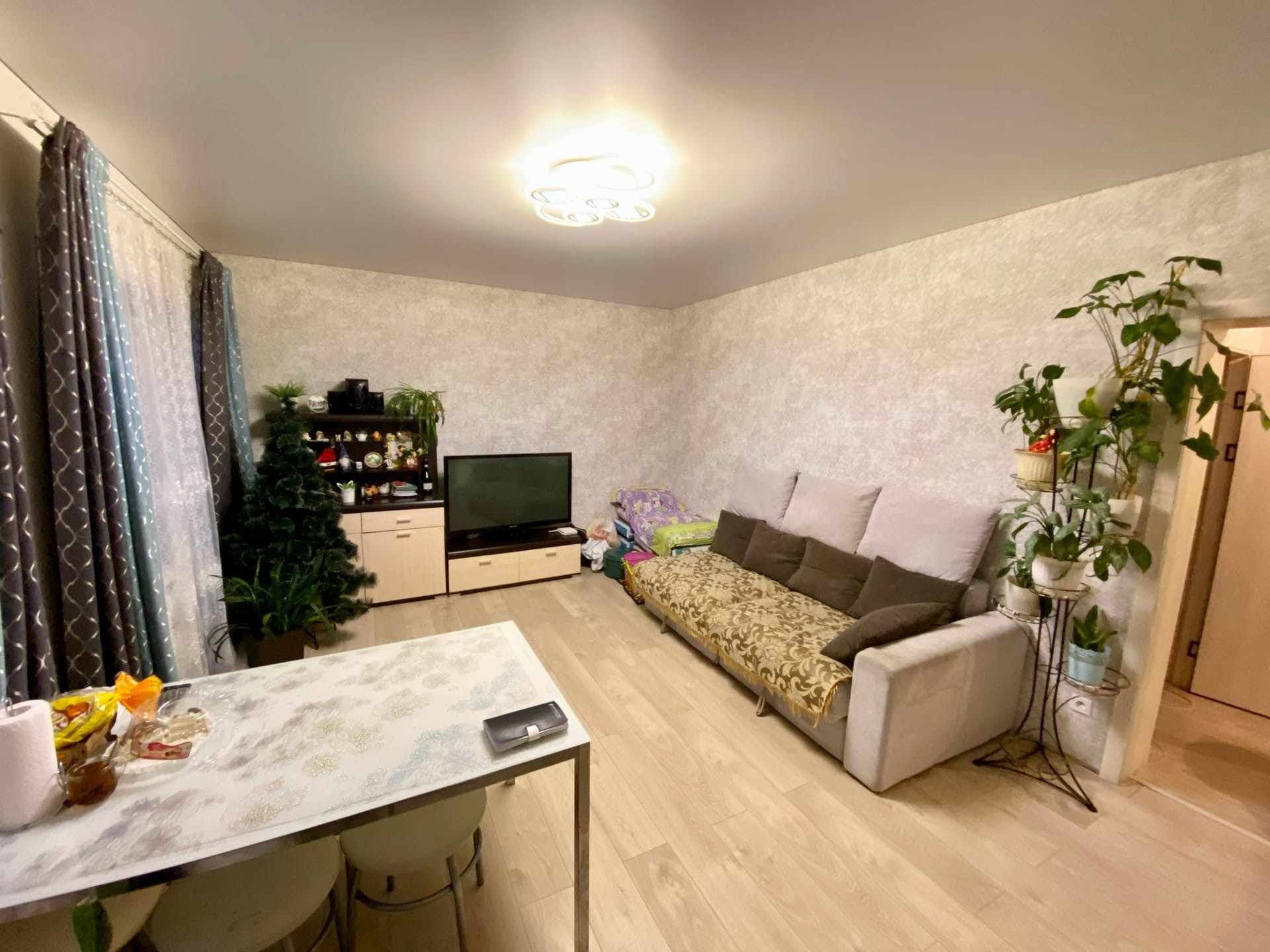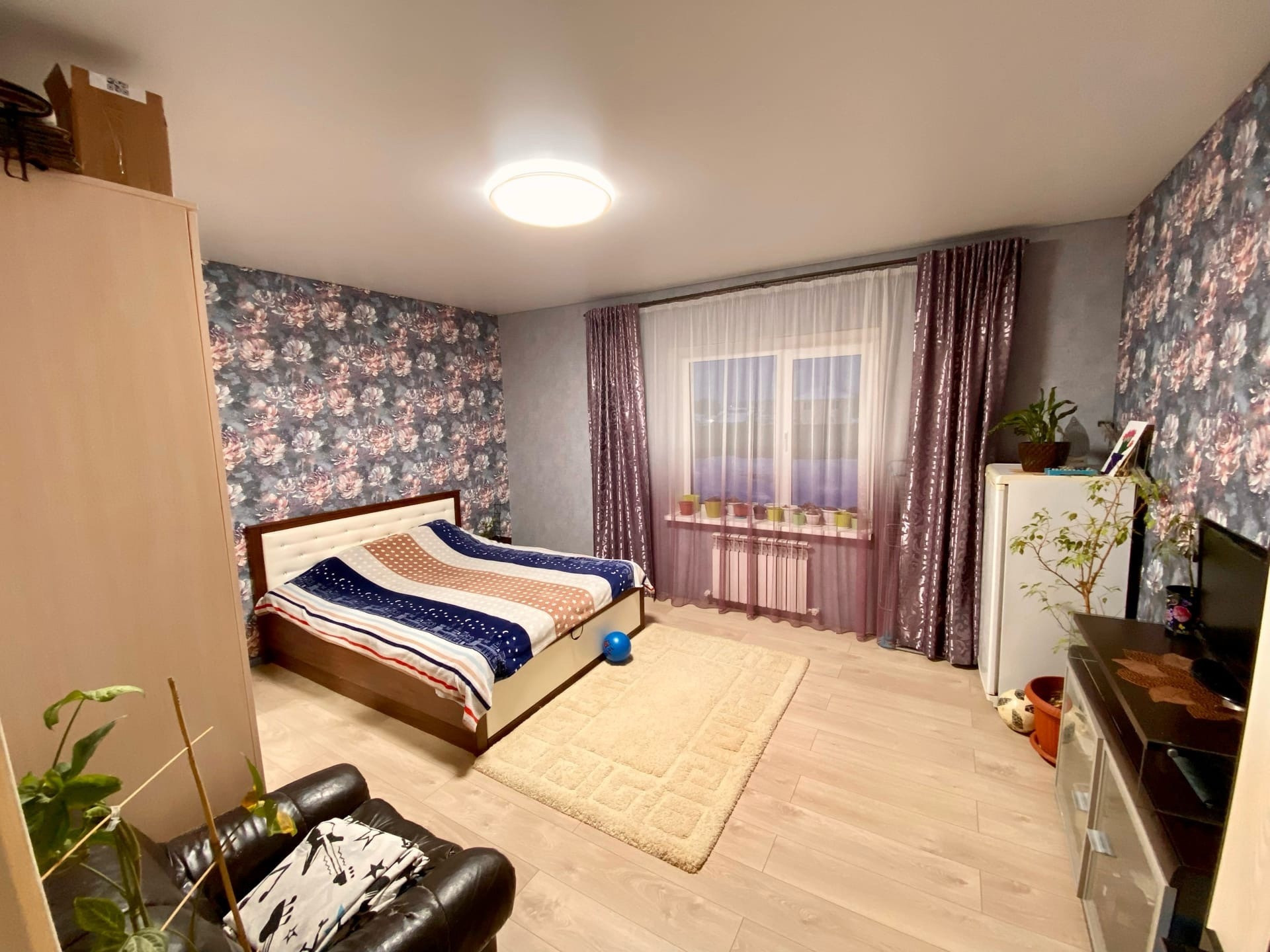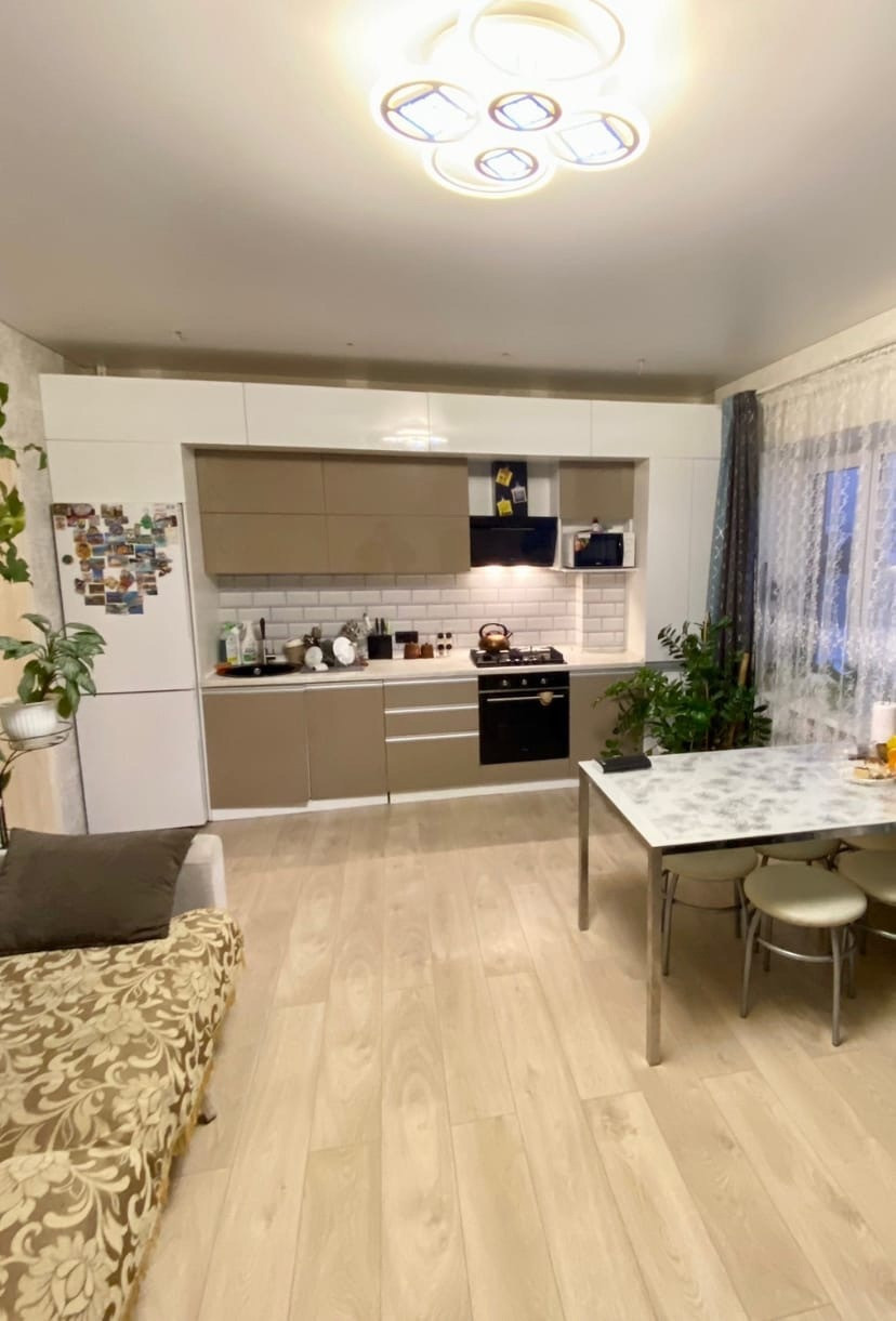 3 комнаты, кухня гостиная, сан узел совмещенный.
