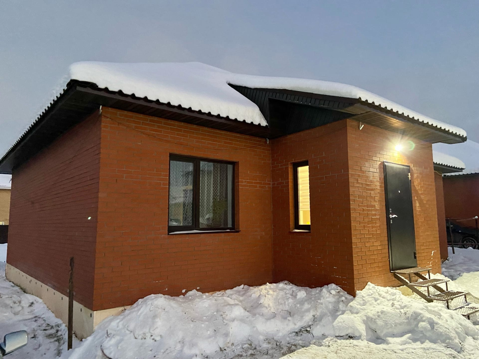 Новый дом, введен в эксплуатацию, стены газоблоки, обналичка кирпич, крыша профнастил, окна пластиковые стеклопакеты.