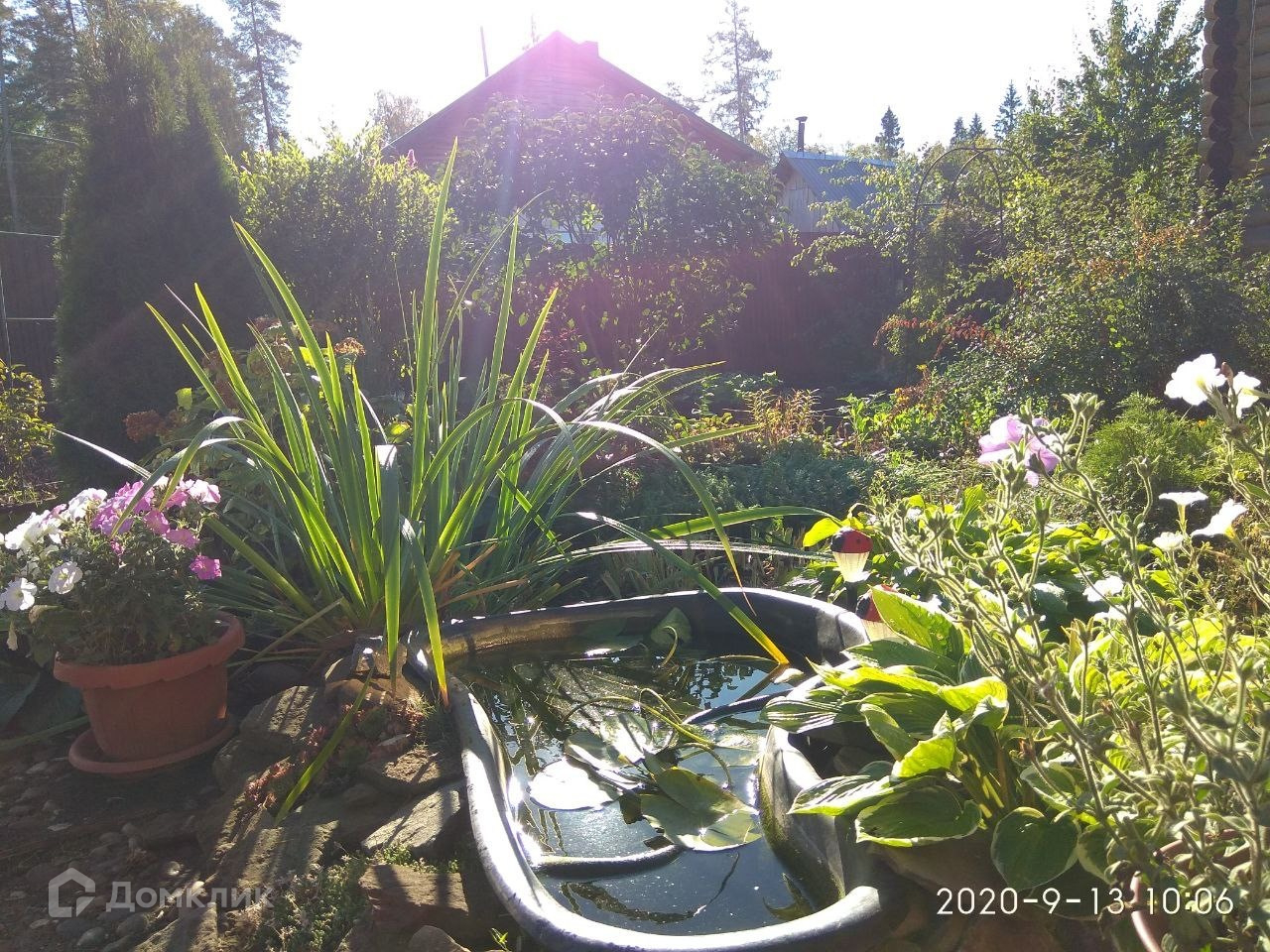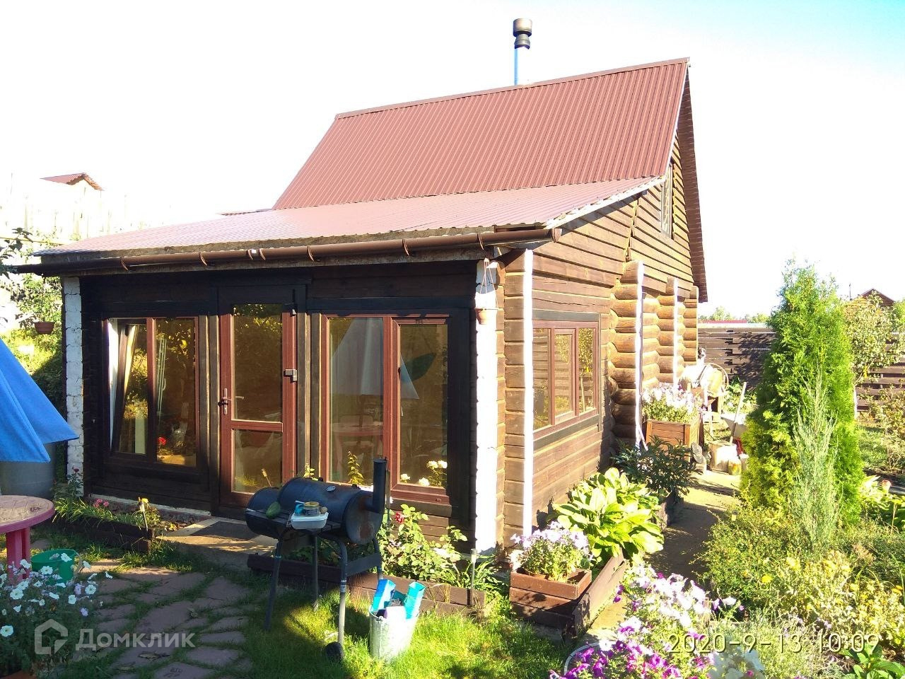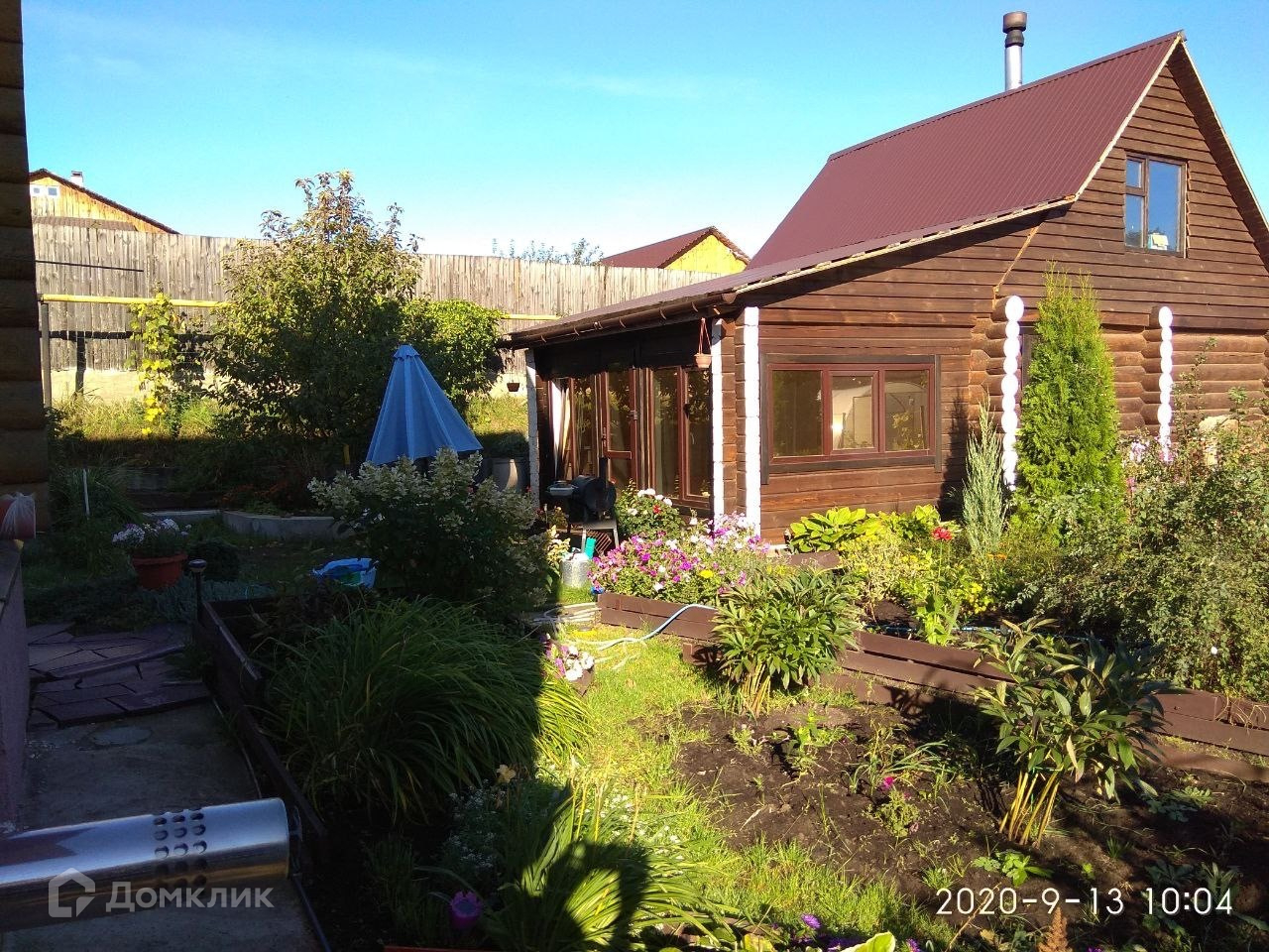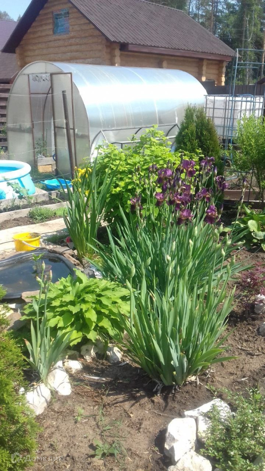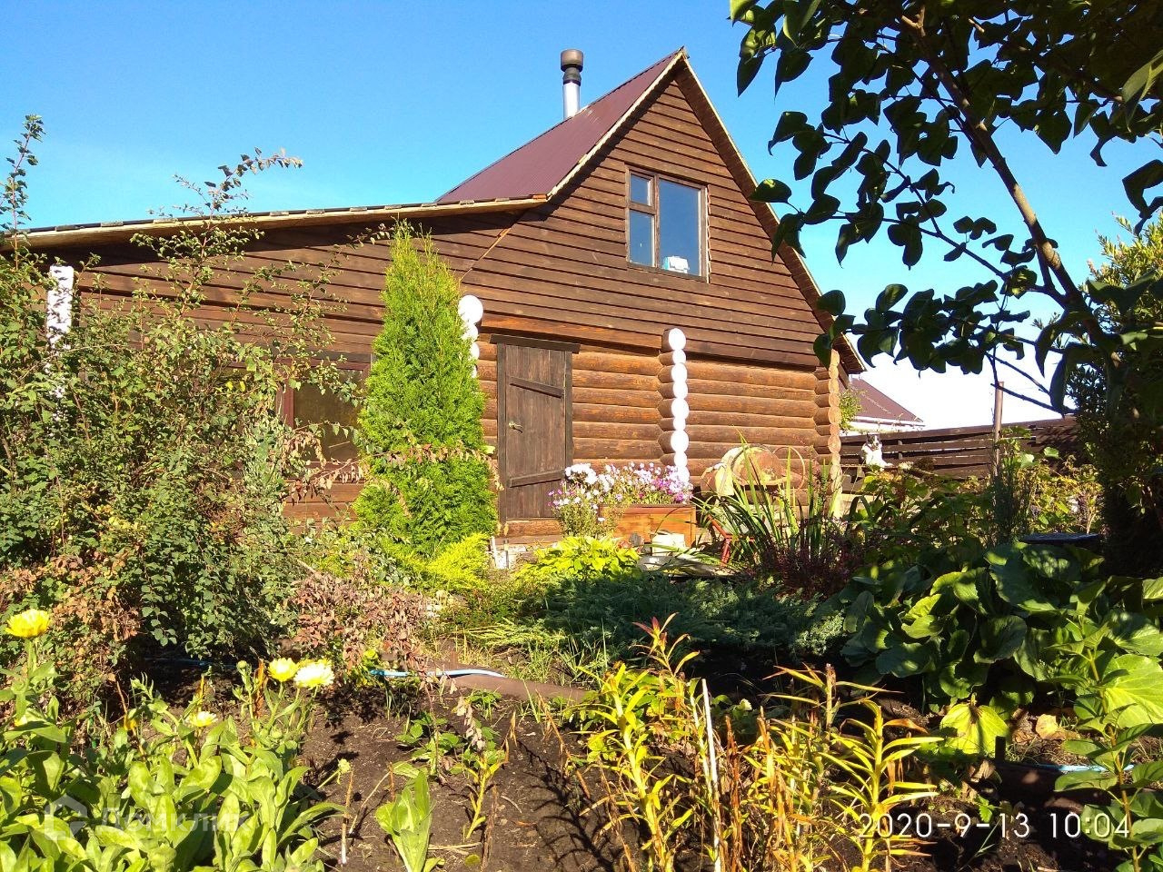 Ухоженная придомовая территория с плодоносящими деревьями и кустарниками (груша, яблоня, крыжовник, смородина чёрная и красная, ирга, жимолость, вишня, орешник, виноград)