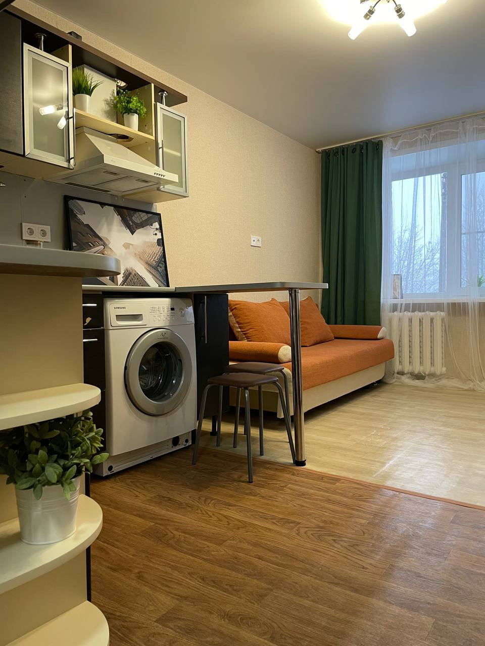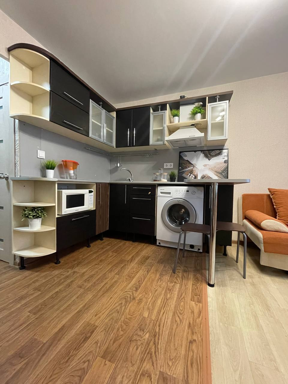 Оставляем в квартире всю мебель и бытовую технику (холодильник, стиральная машина, вытяжка, микроволновка). Все в рабочем состоянии.