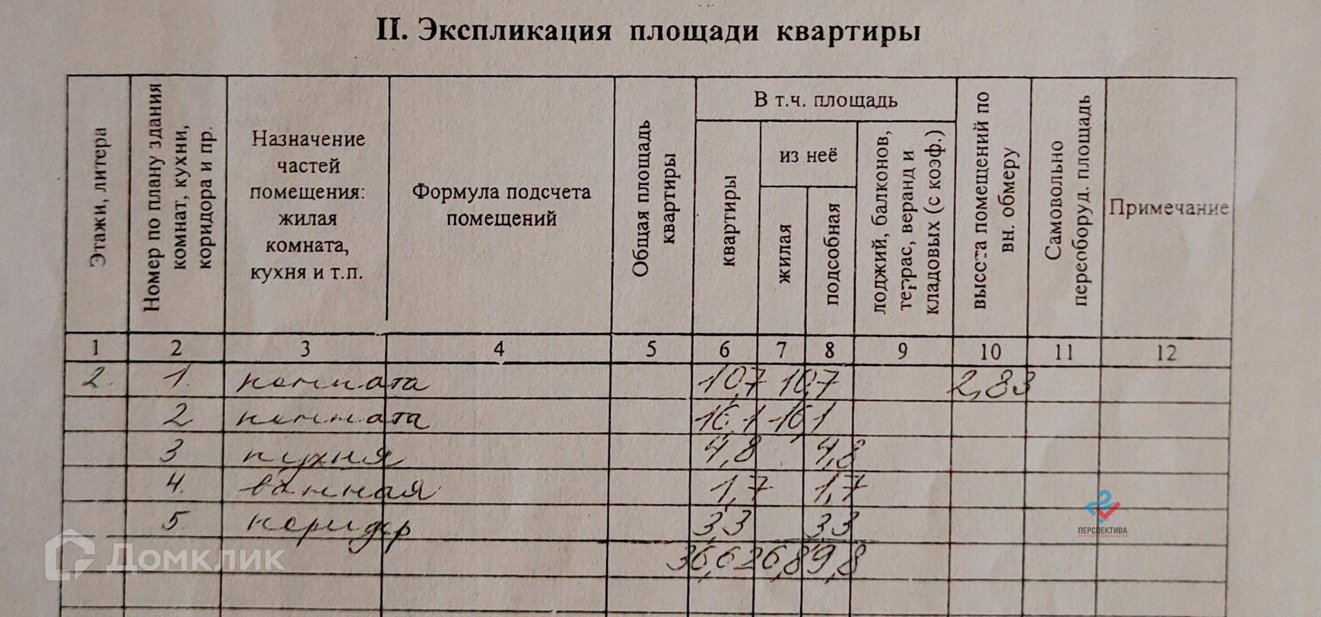 Общая площадь 36.6 м2