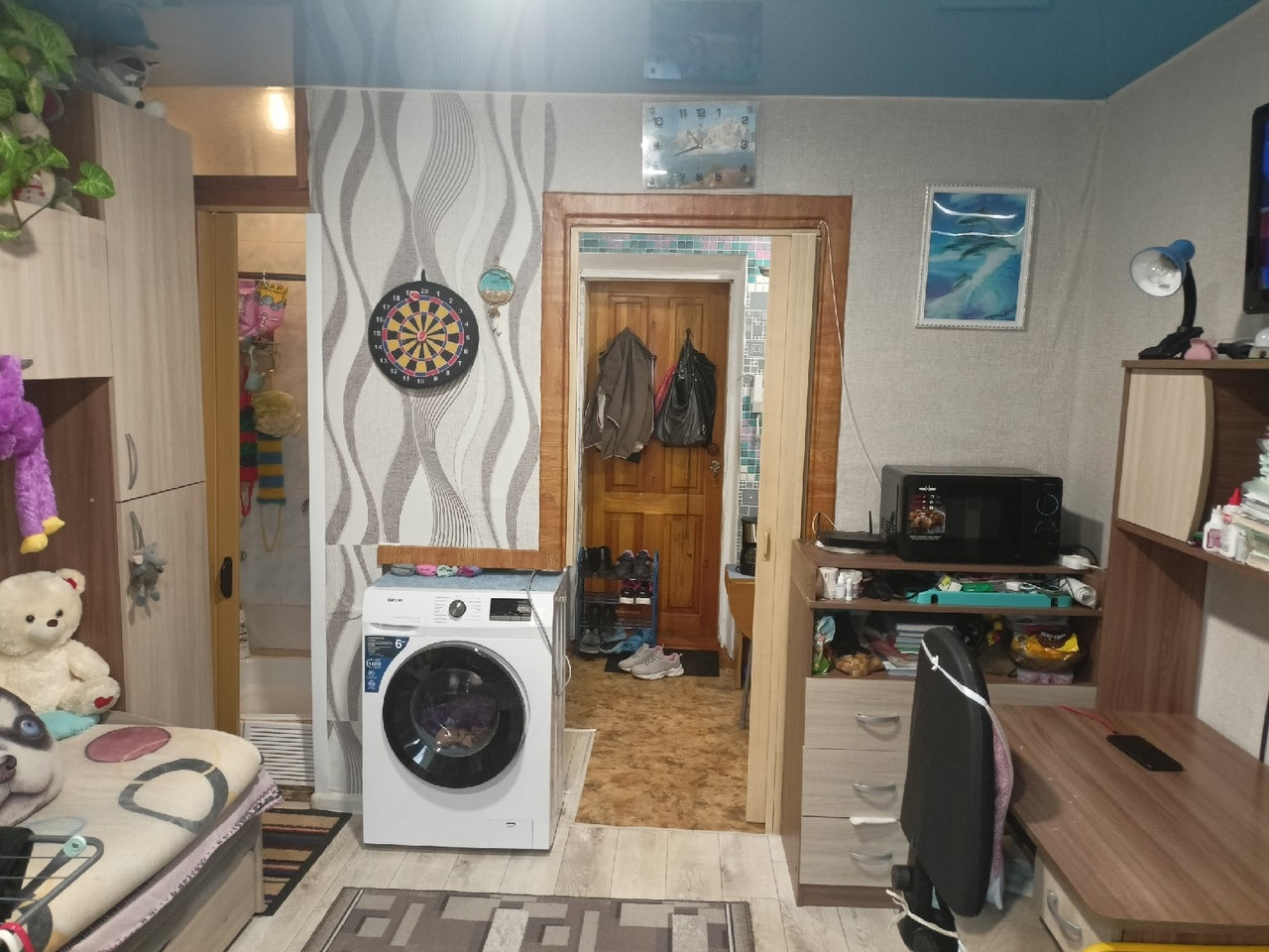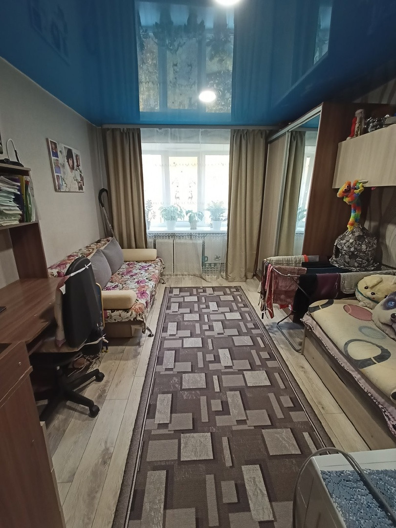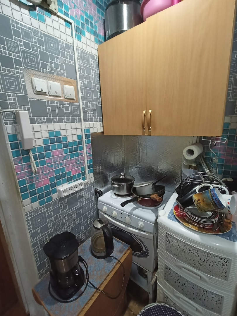 КГТ в хорошем состоянии, натяжные потолки, батареи поменяны, трубы пластик, счетчики на электричество и воду. При продаже остается шкаф и полки в комнате, навесные шкафы и раковина в зоне кухни, плита.