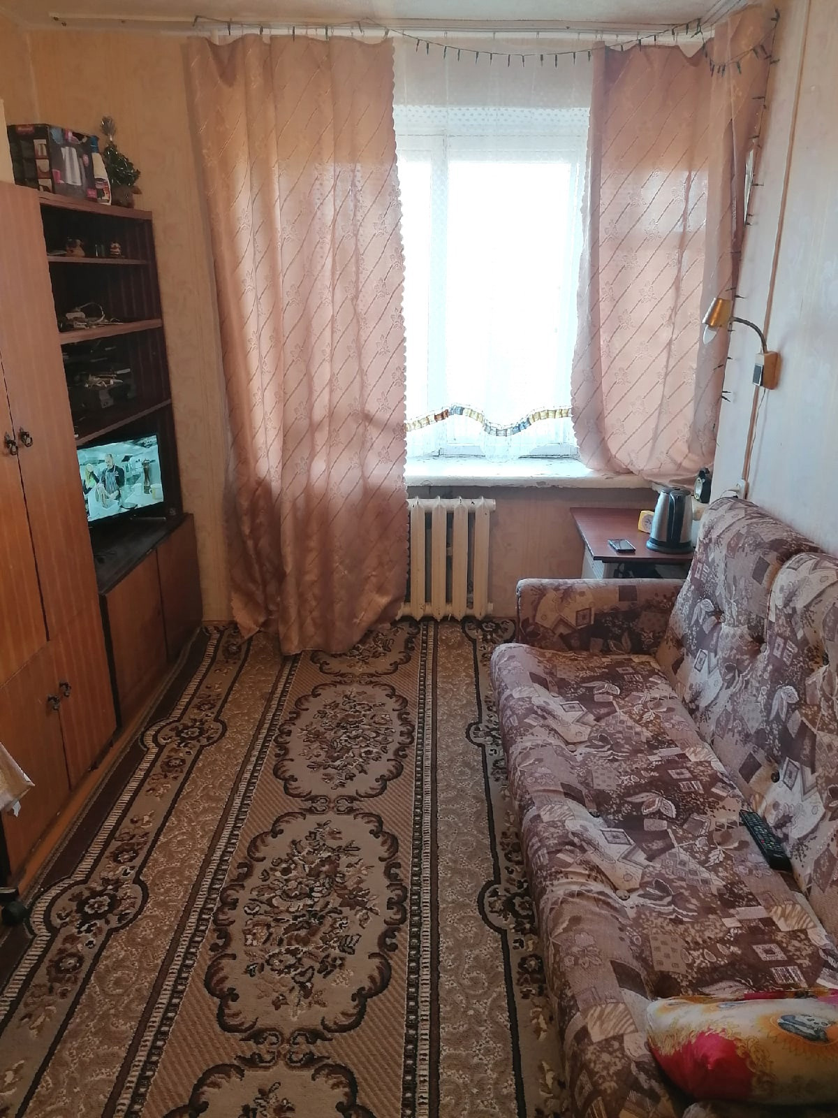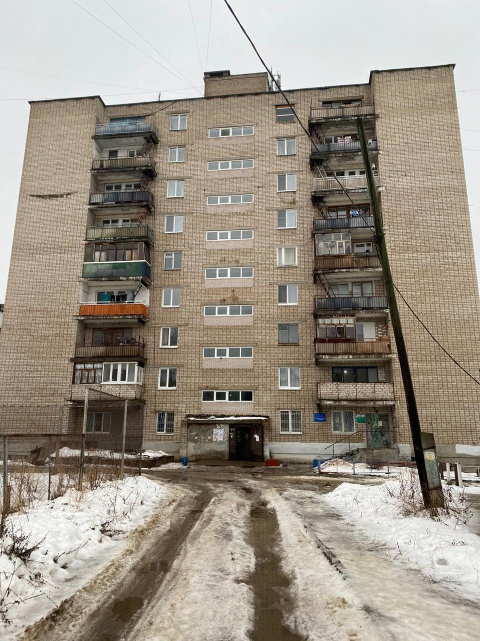 Комната расположена на 8-ом этаже в 9-и этажном кирпичном доме.