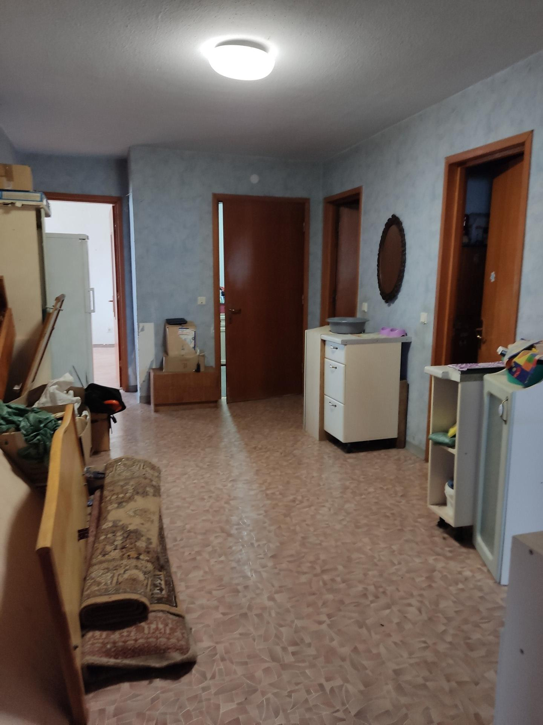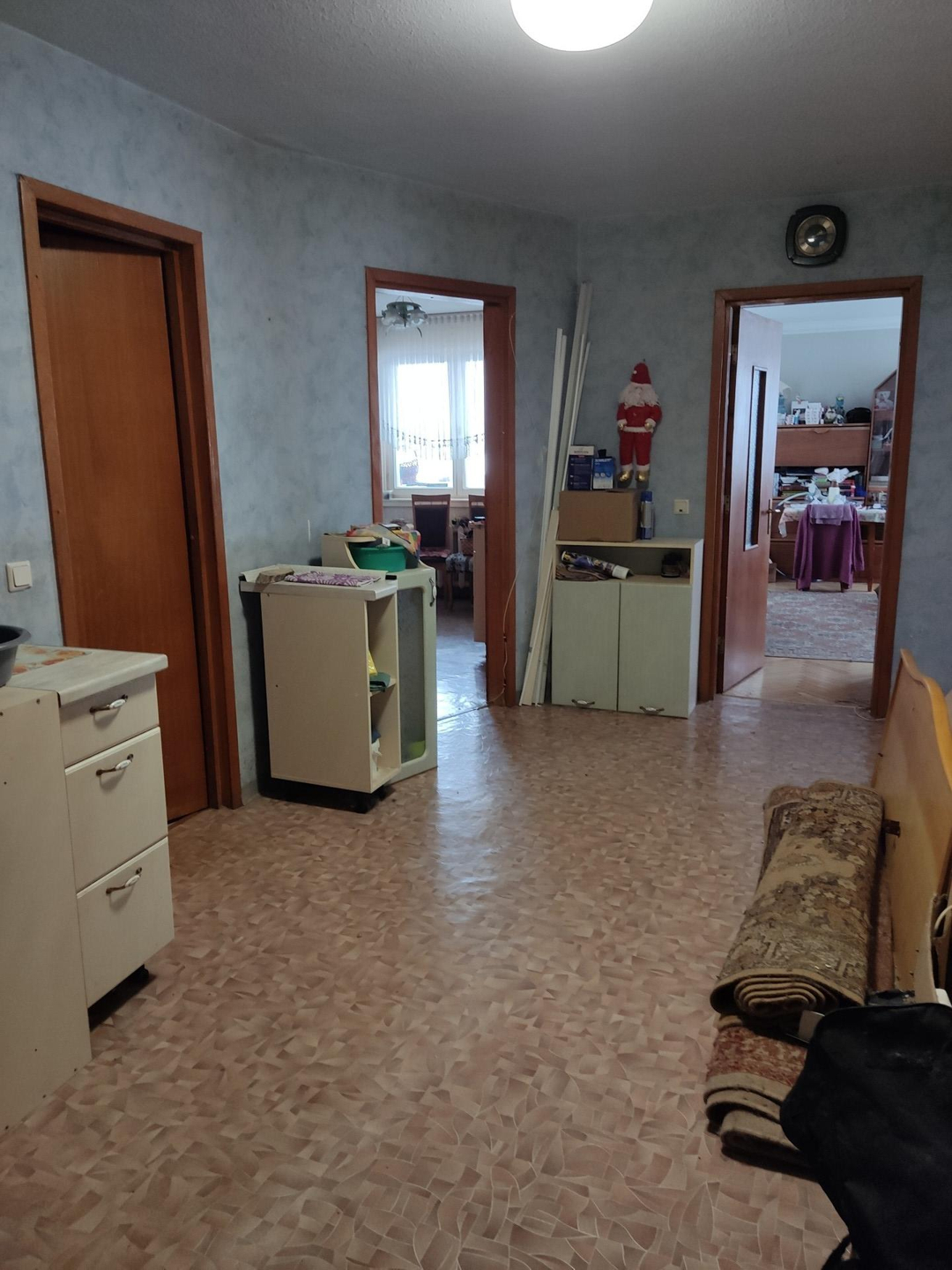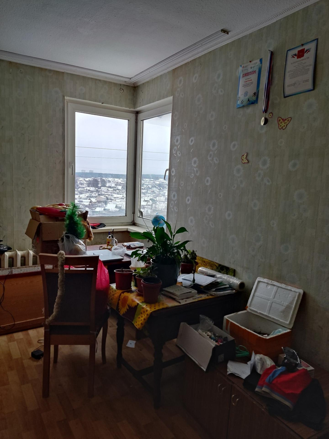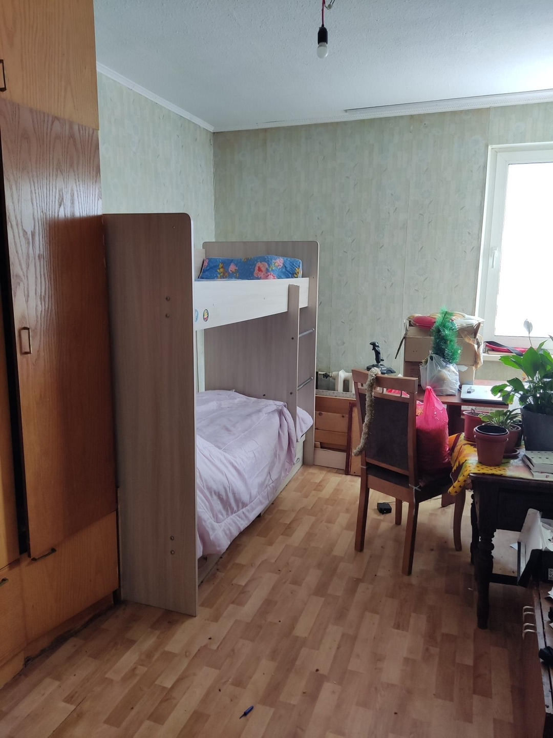 большая квартира для большой семьи, пол частично линолеумом, частично паркет (не скрипит), санузел раздельный, окна частично пластиковые, лоджия застеклена пластик. Торг