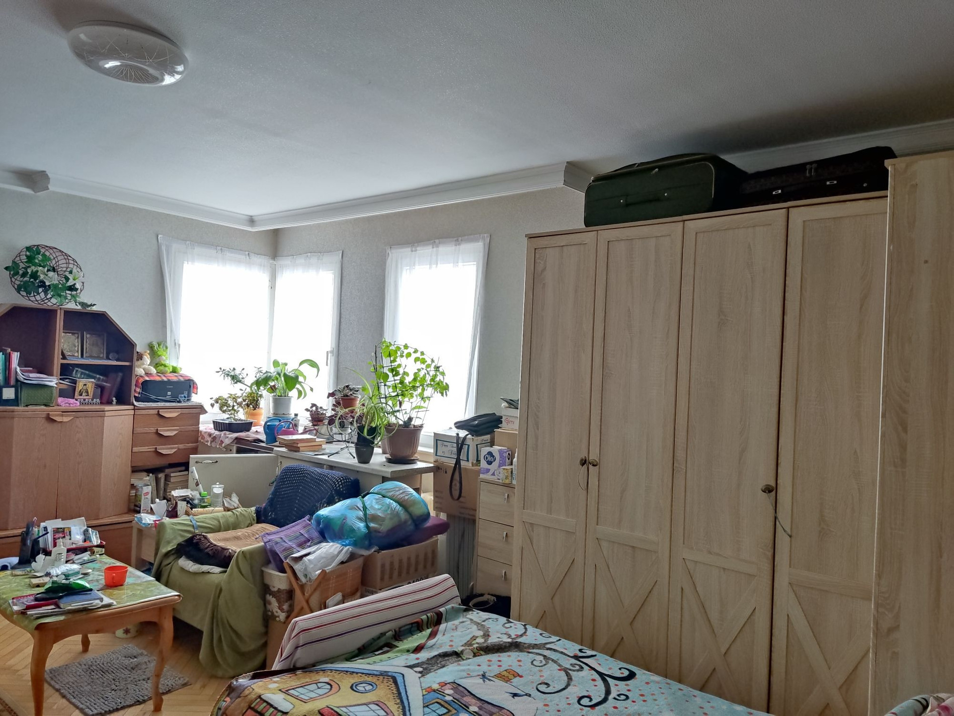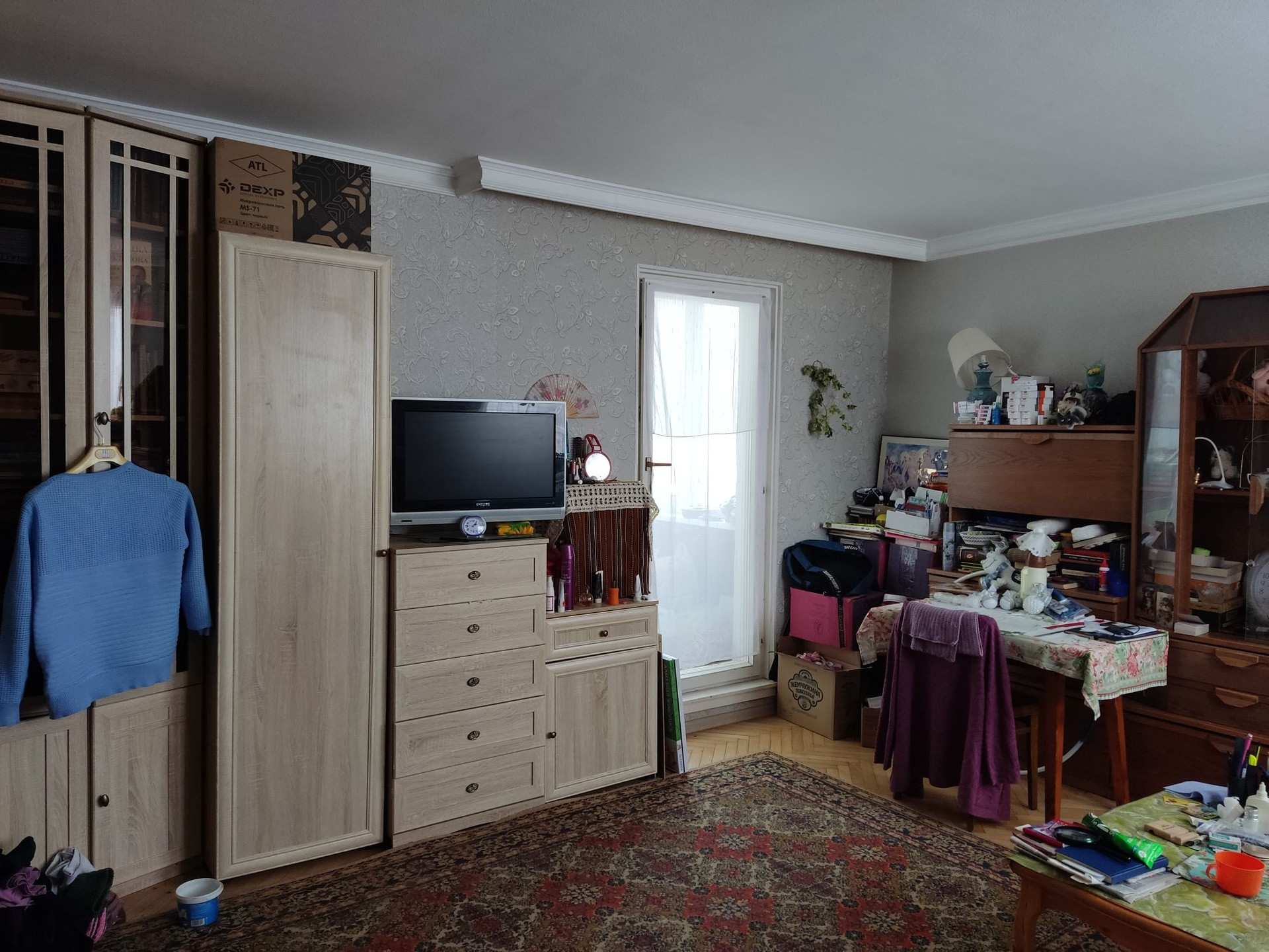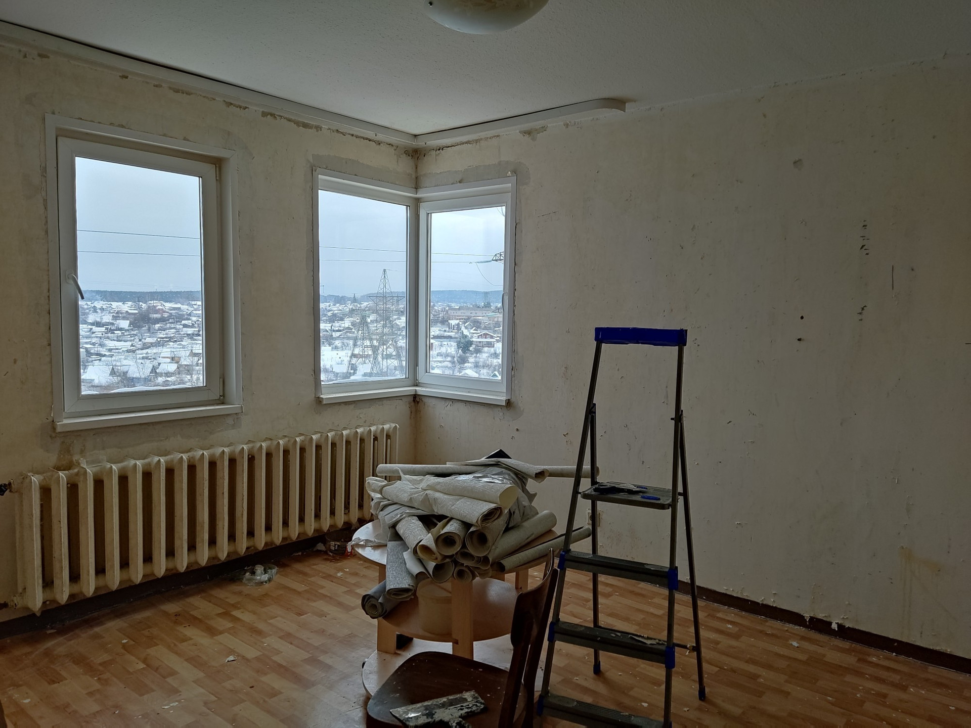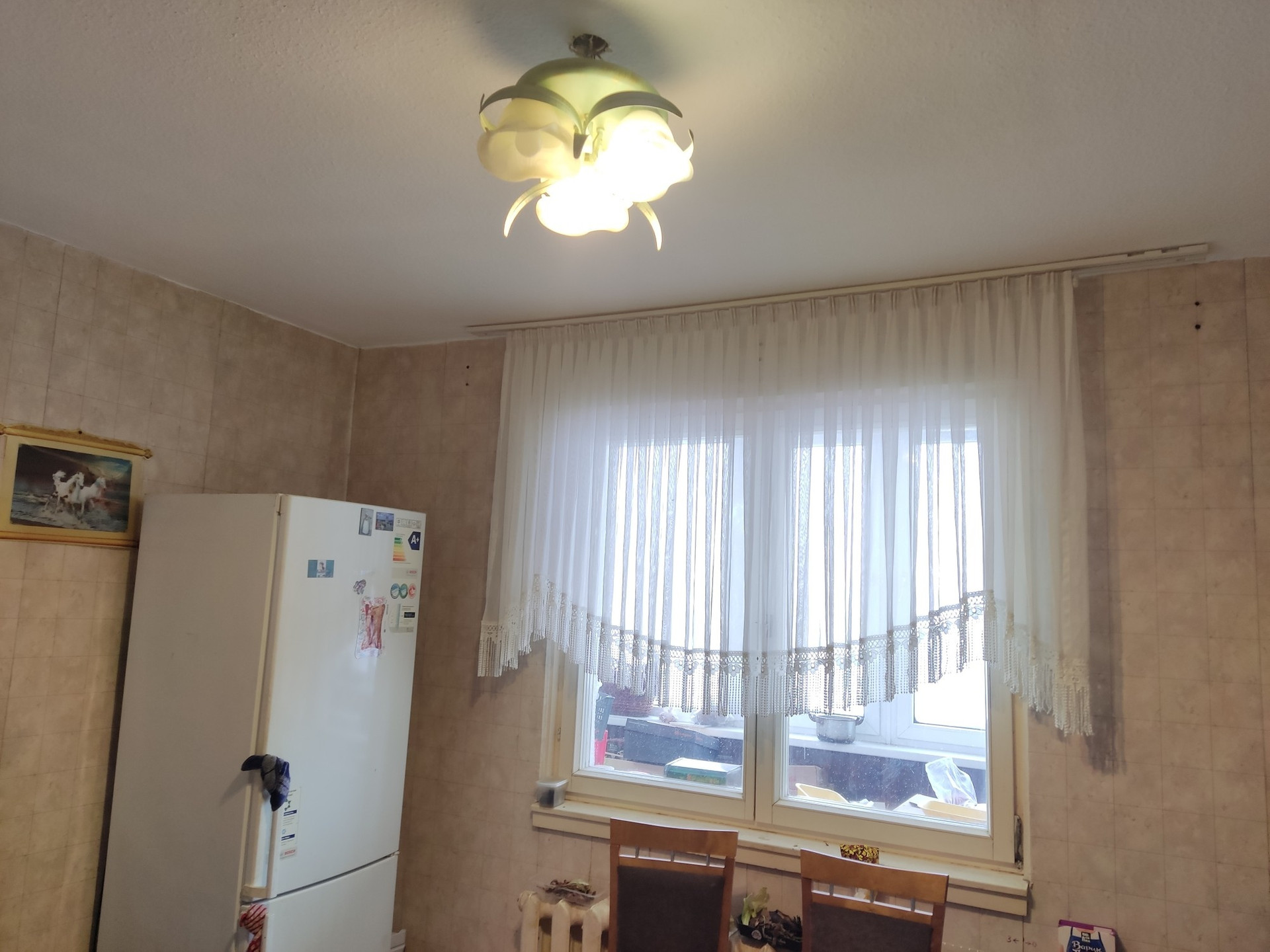 большая квартира для большой семьи, пол частично линолеумом, частично паркет (не скрипит), санузел раздельный, окна частично пластиковые, лоджия застеклена пластик. Торг