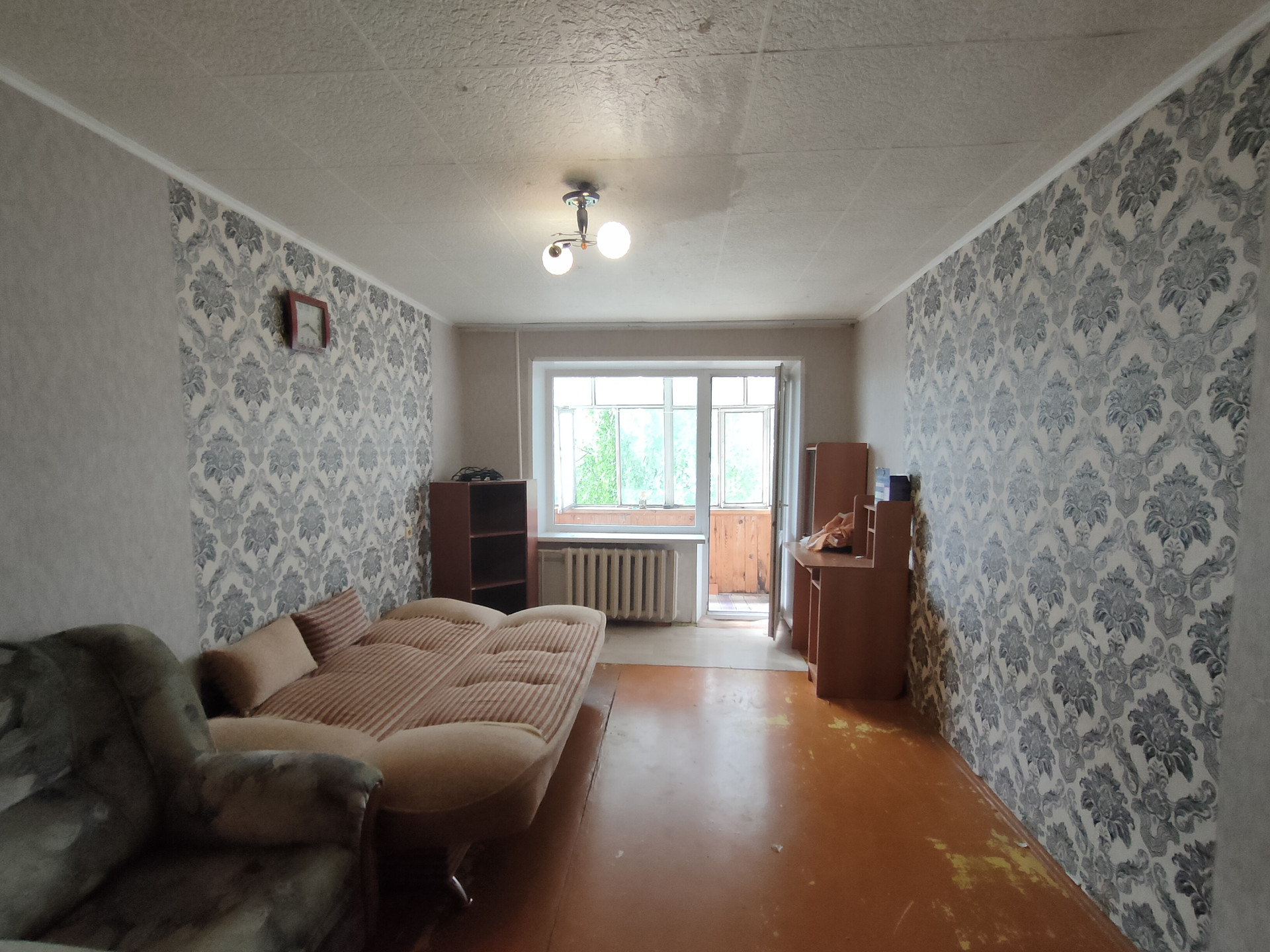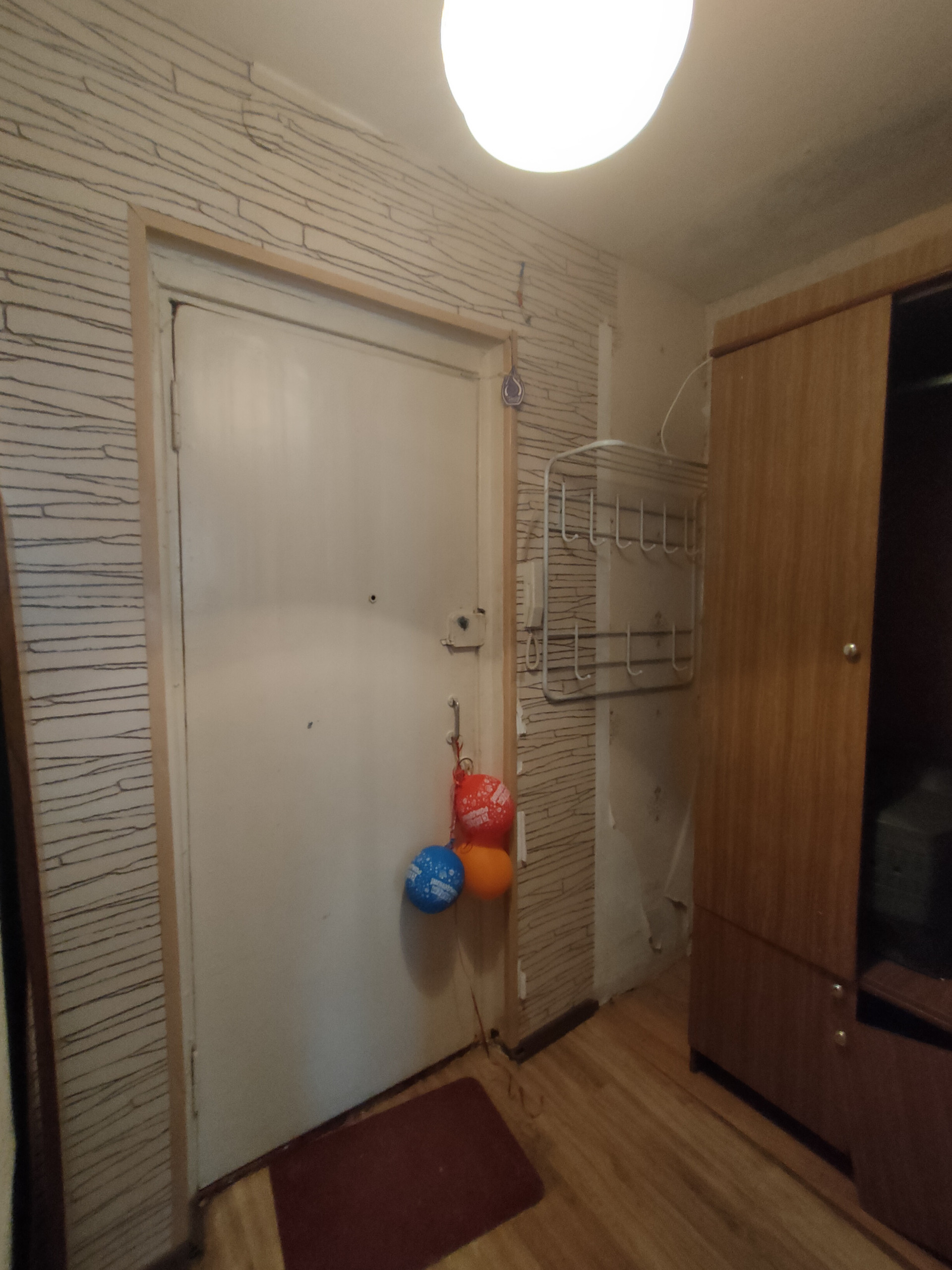 Окна-пластиковые, балкон застеклен деревянными рамами. Надежная металлическая входная дверь. Имеются счетчики на воду и газ. Один взрослый собственник, в квартире никто не прописан. В собственности более 5 лет.