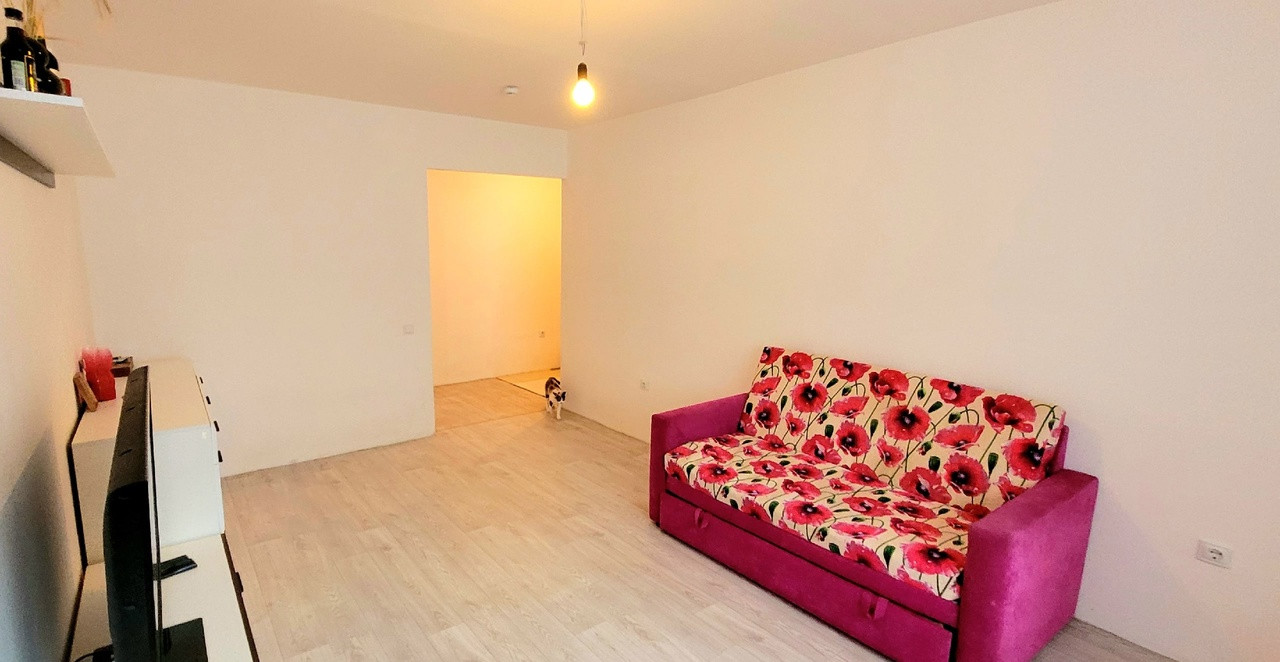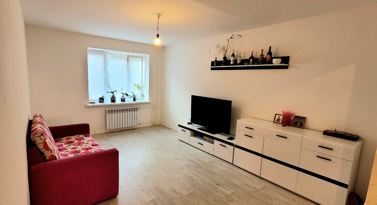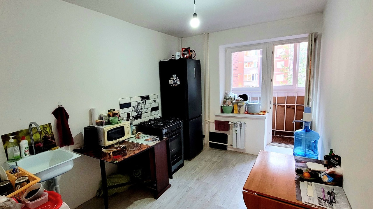 Квартира без косметического ремонта. Стены выровнены. На полу линолиум.