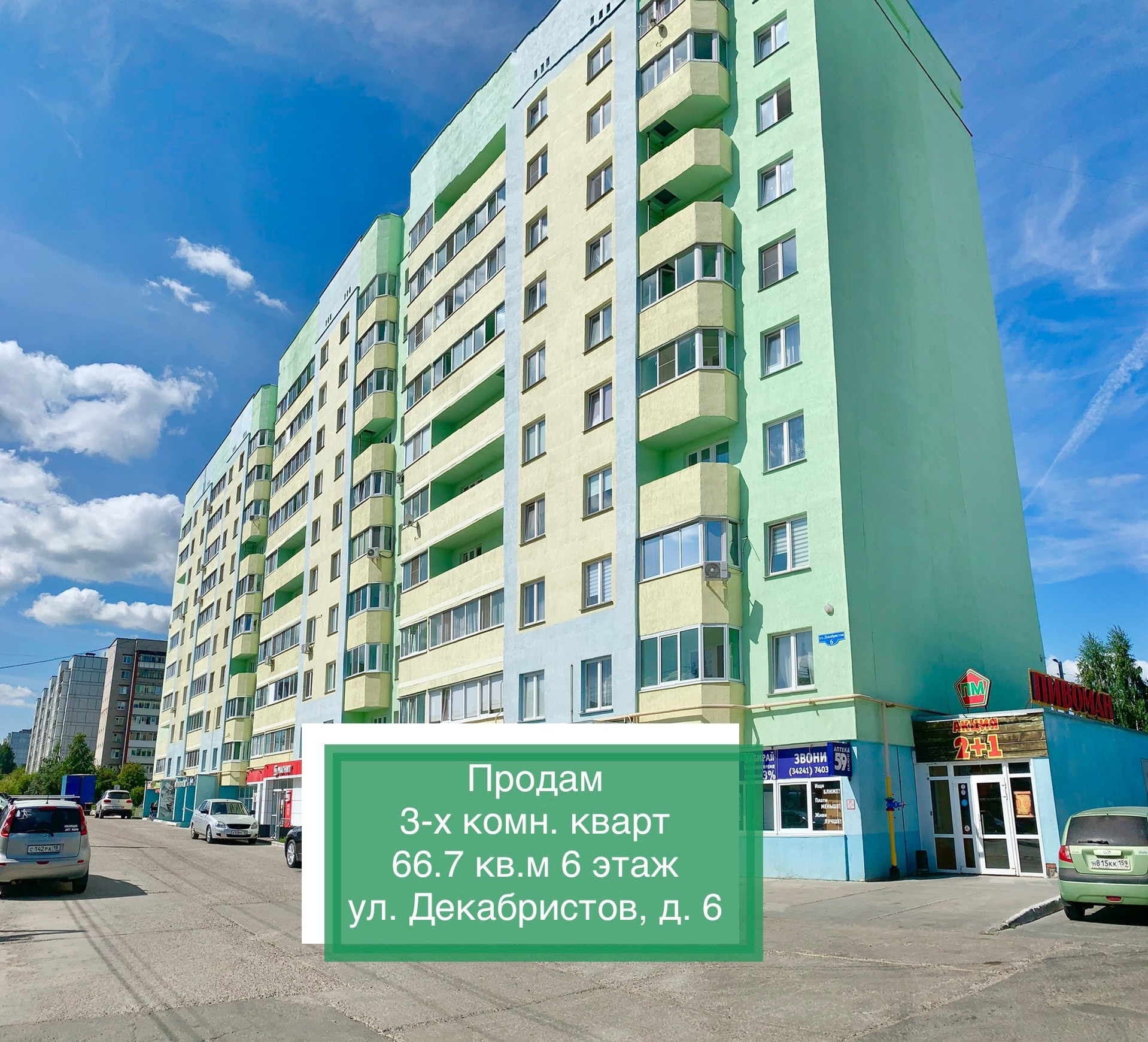 3-комнатная квартира, 66.7 м2, этаж 6 / 11, на продажу в Чайковском, улица Декабристов, 6