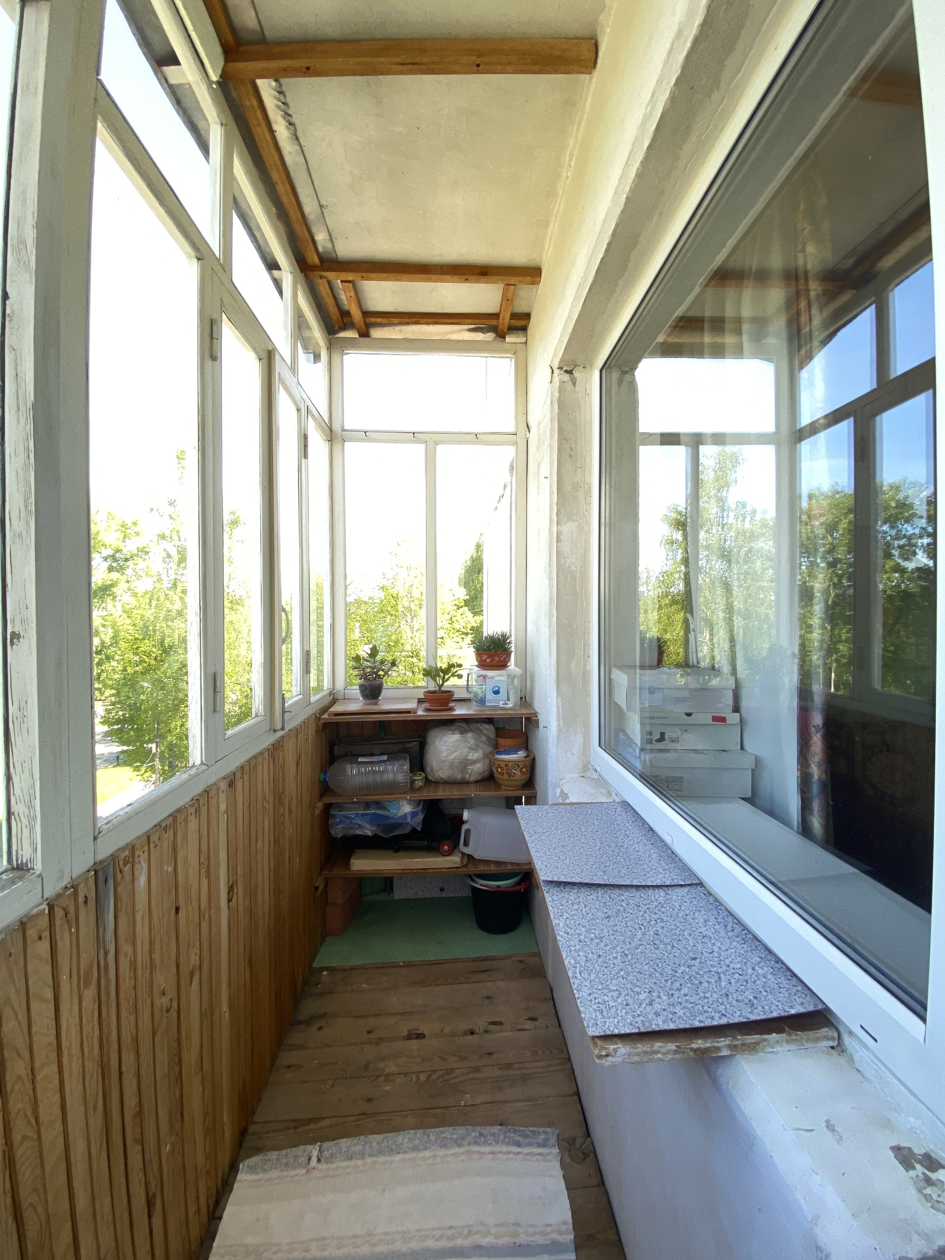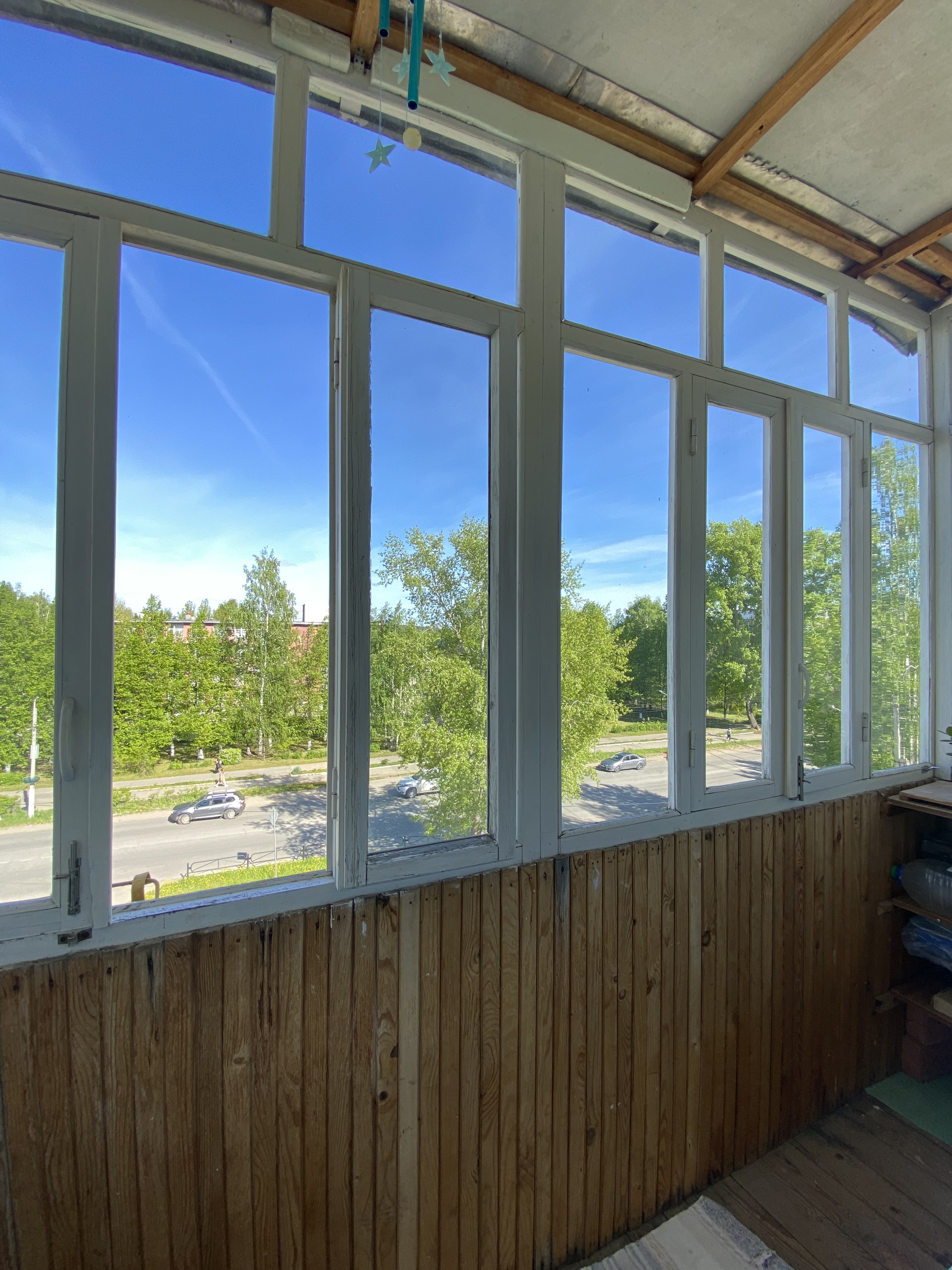 Балкон застеклен деревянными рамами