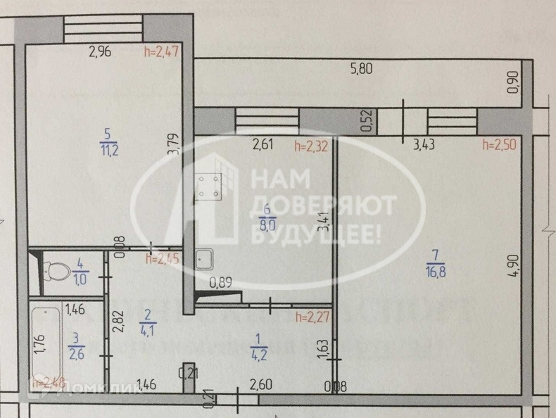 Общая площадь 45.9 м2