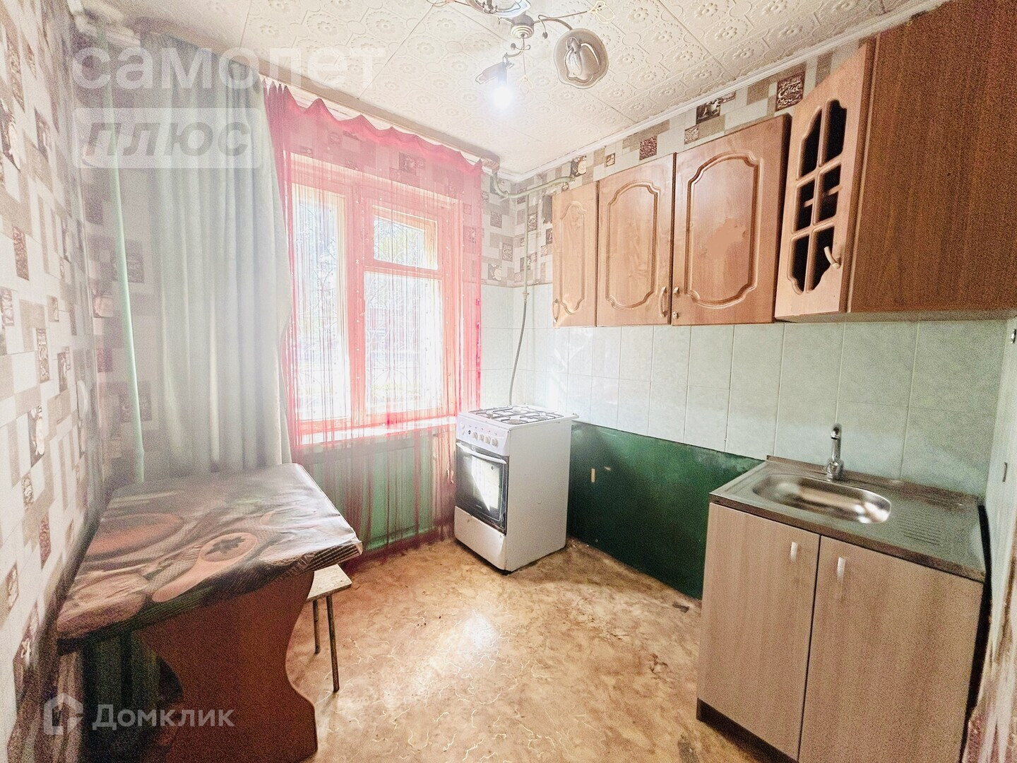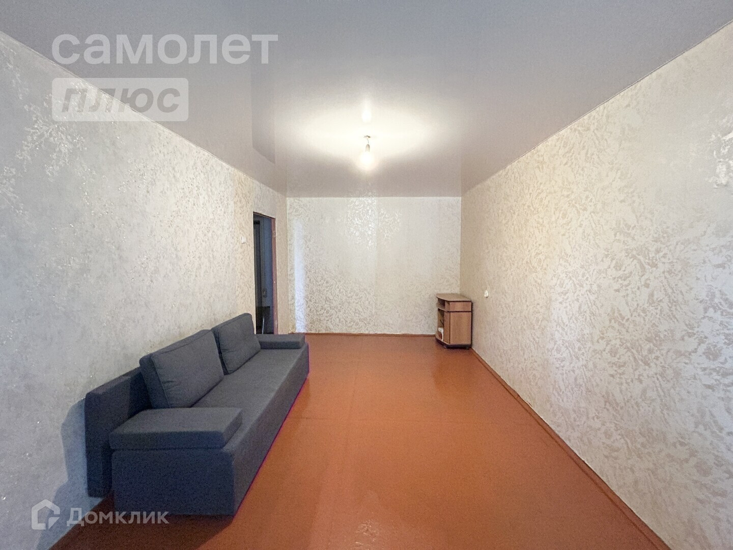 Пол на кухне и в прихожей линолеум, в комнате покрашен;
