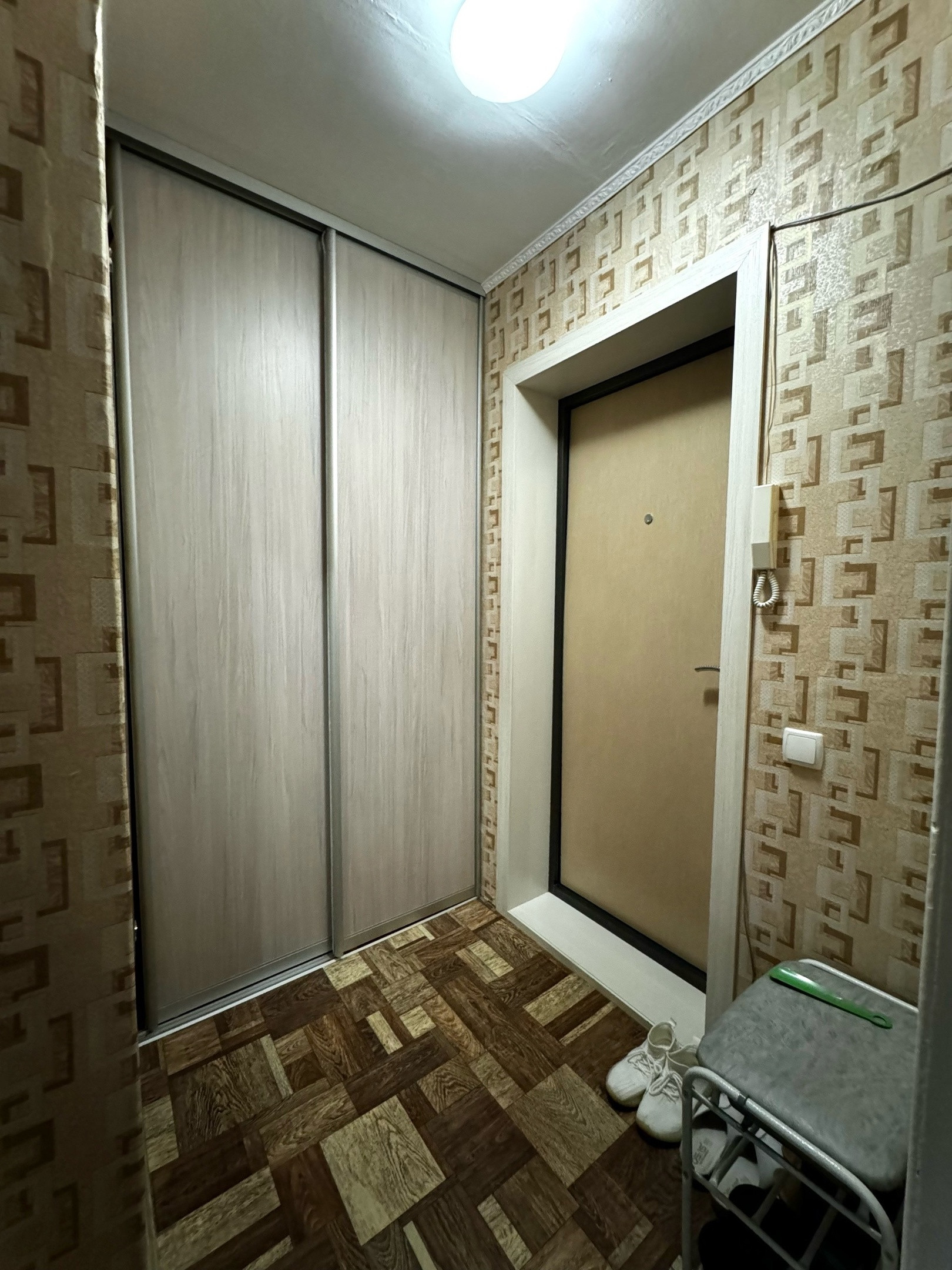 Остается кухонный гарнитур, встроенный шкаф в прихожей