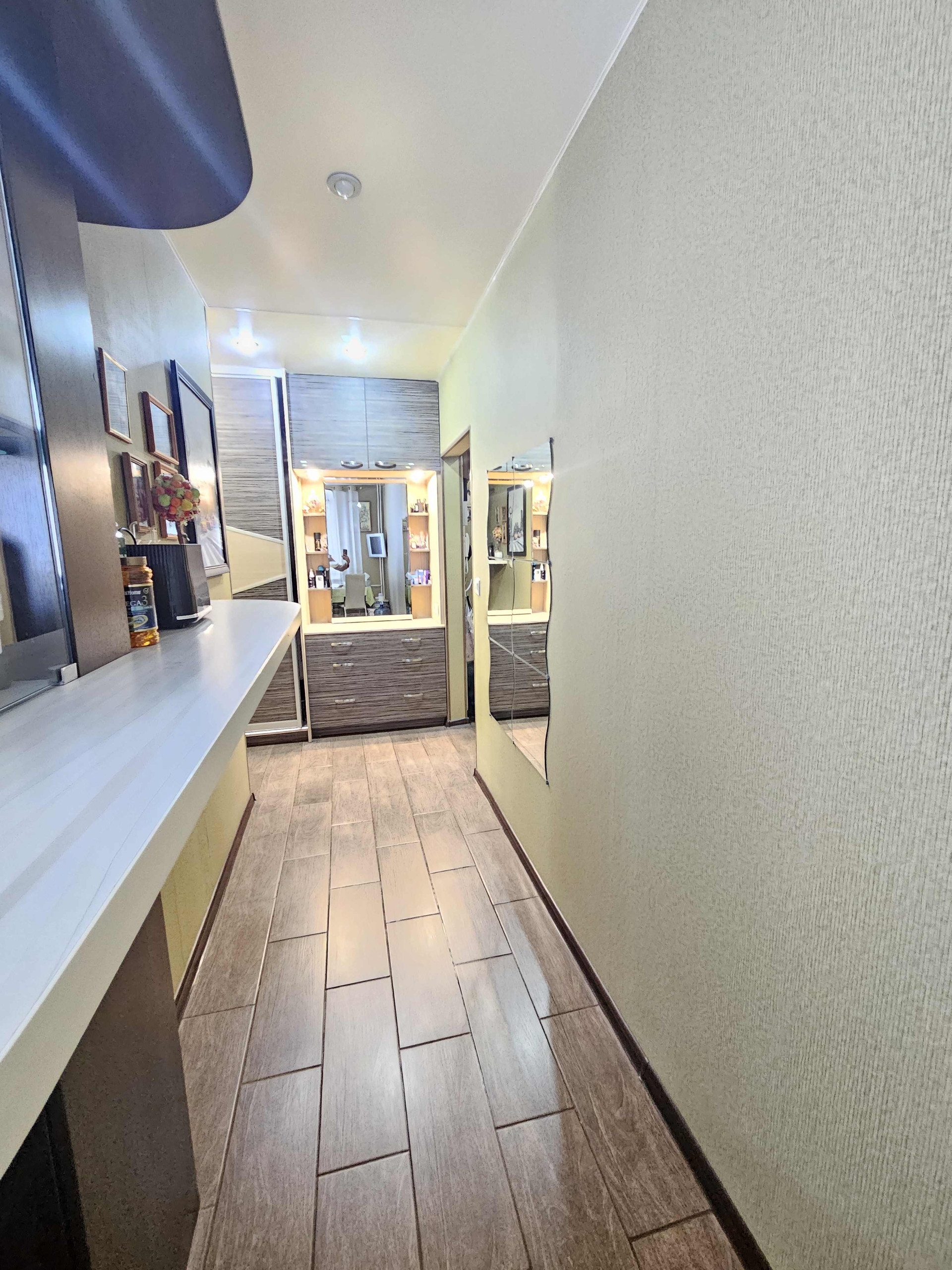 В квартире выполнен ремонт: заменена электрика, поменяны входная дверь, лоджия пластик,   хороший встроенный кухонный гарнитур с техникой.   Пол стяжка: в прихожей и кухне- керамогранит,  в комнатах - ламинат. Комнаты раздельно. Санузел раздельно ( в ванной кафель - ванна, бойлер, раковина остаются, в туалете -на стенах обои). Установлена хорошая сантехника, заменены все трубы, установлены фильтра очистки, счетчики на все приборы учета. Квартира очень теплая и уютная. Хорошие соседи, тамбур на 2 квартиры.  Есть хорошая кладовка со стеллажами в подвале - сухая.