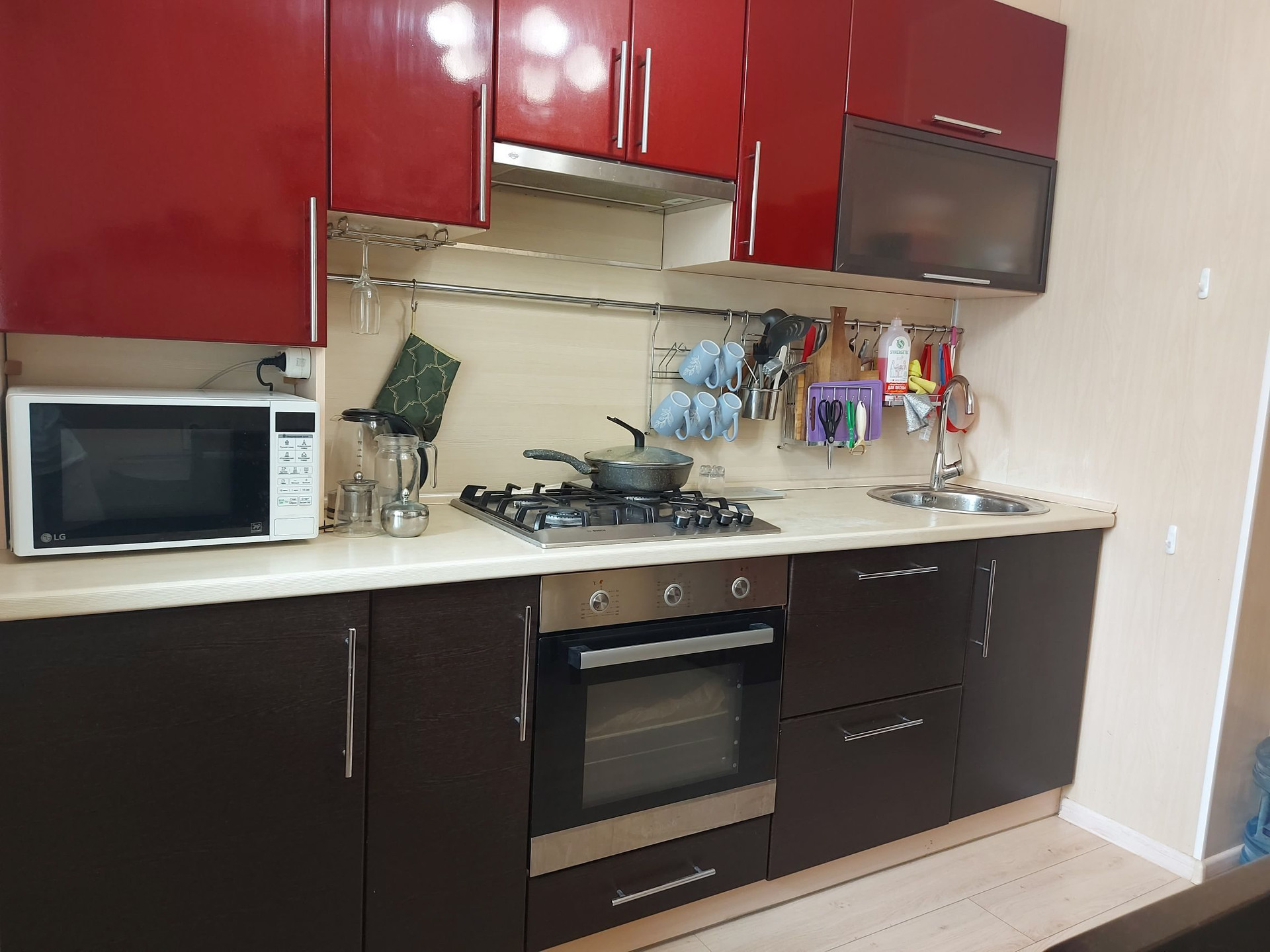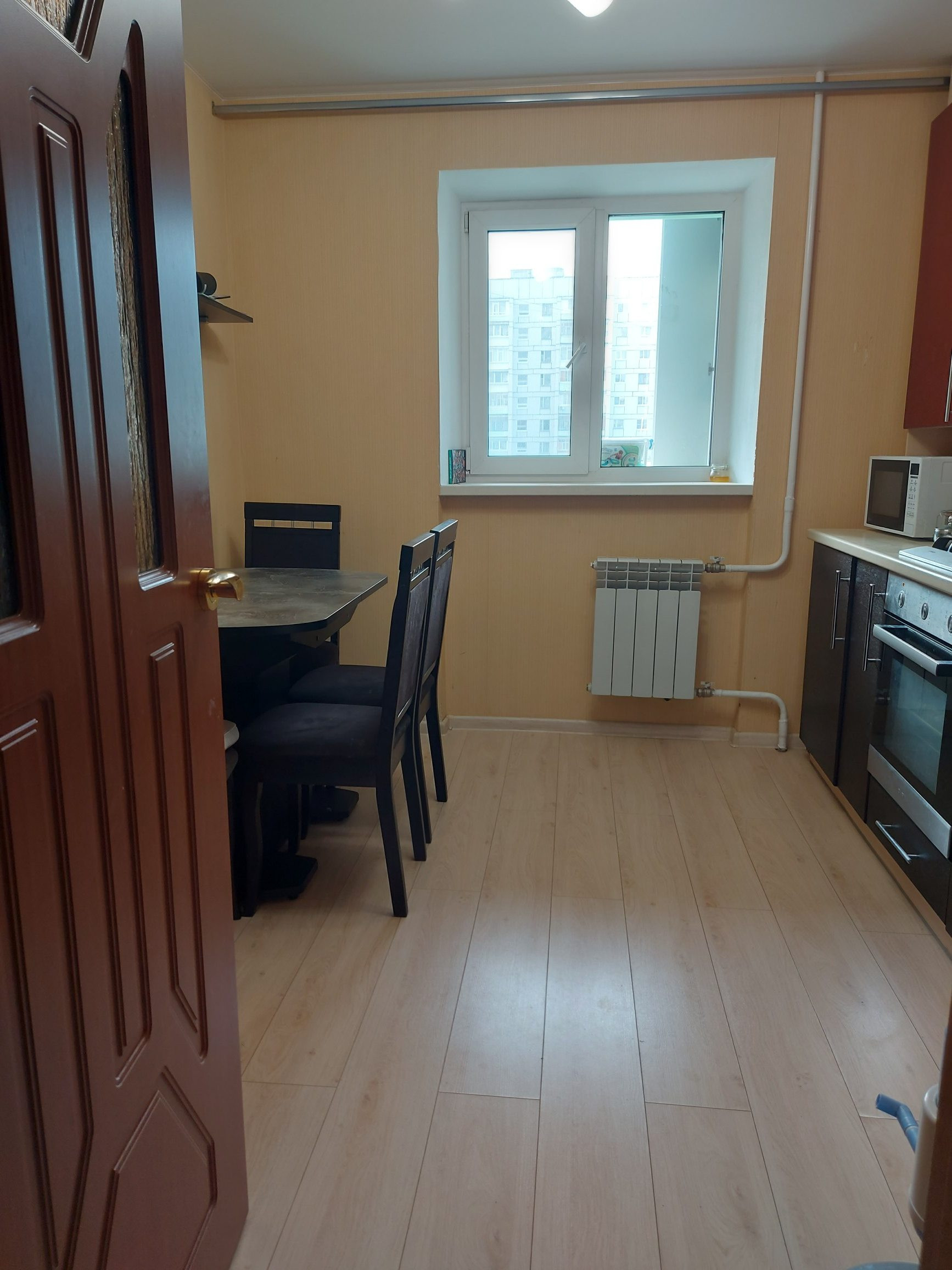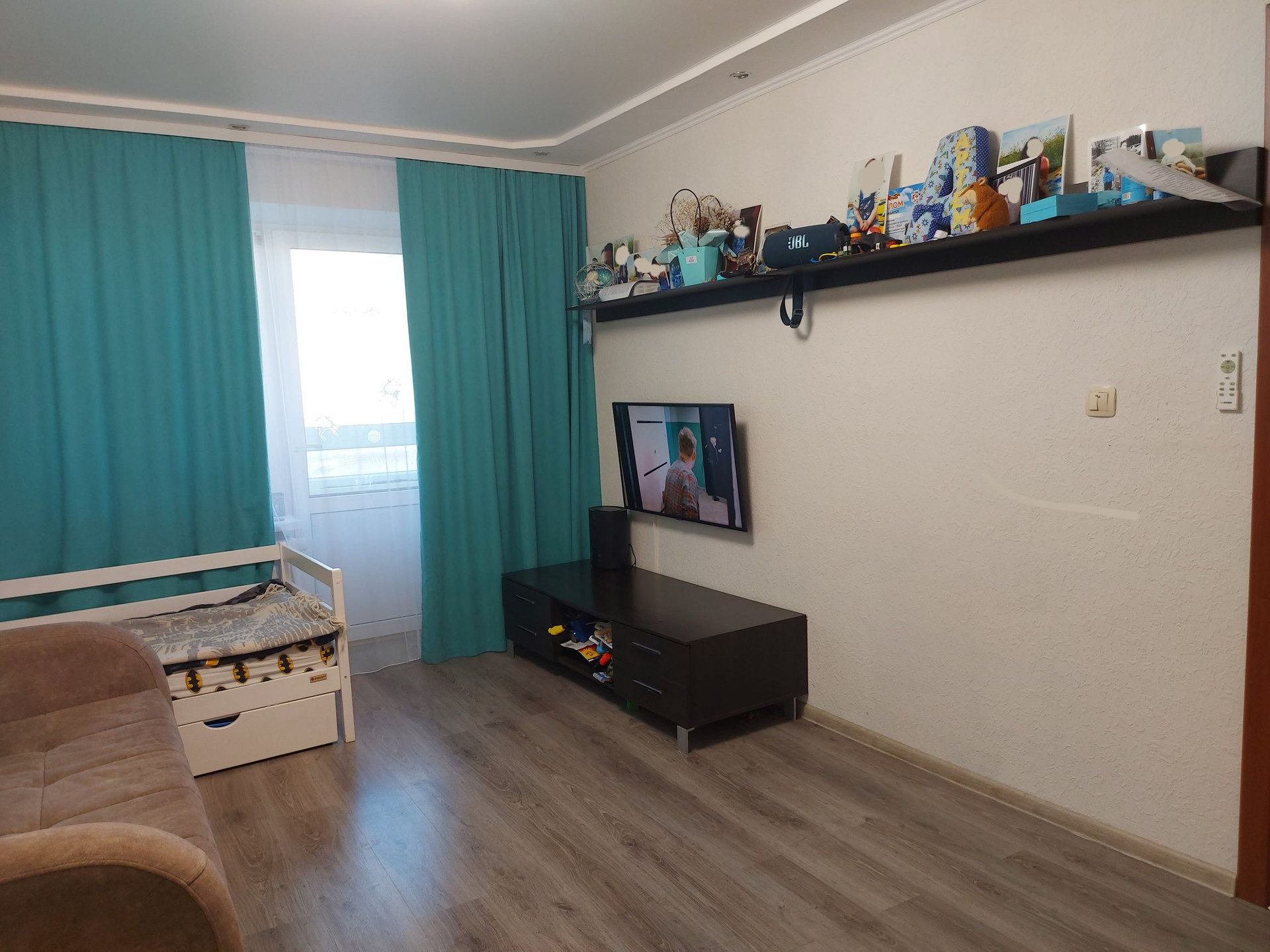 В квартире остается: кухонный гарнитур с варочной панелью и духовым шкафом, прихожая с вместительной обувницей, шкаф в детской комнате, тумба под телевизор и навесные полки, водонагреватель.