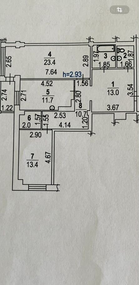 Жилая площадь 36.8 м2