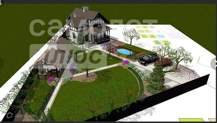 На некоторых фото представлены варианты дизайна придомовой территории на подобных участках.