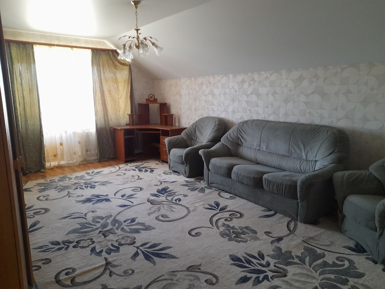 На 2 этаже: 4 комнаты:19м2.,26,9 м2.,16,4 м2.,8м2. Лоджия -11м2 с видом на речку. В доме есть все коммуникации: централизованная вода, газовое отопление-котел, канализация- свой колодец. Частично с мебелью.В доме произведен ремонт.