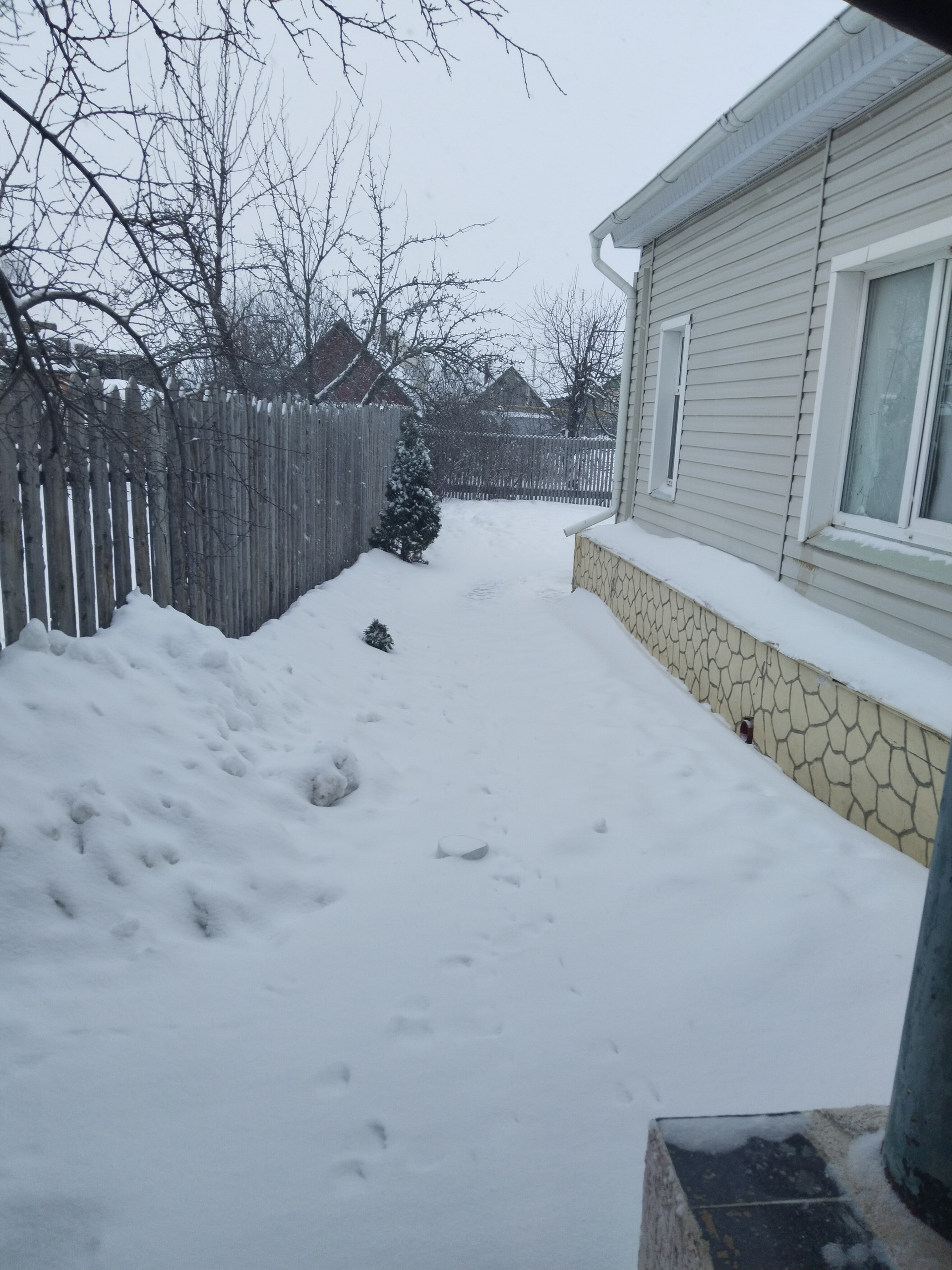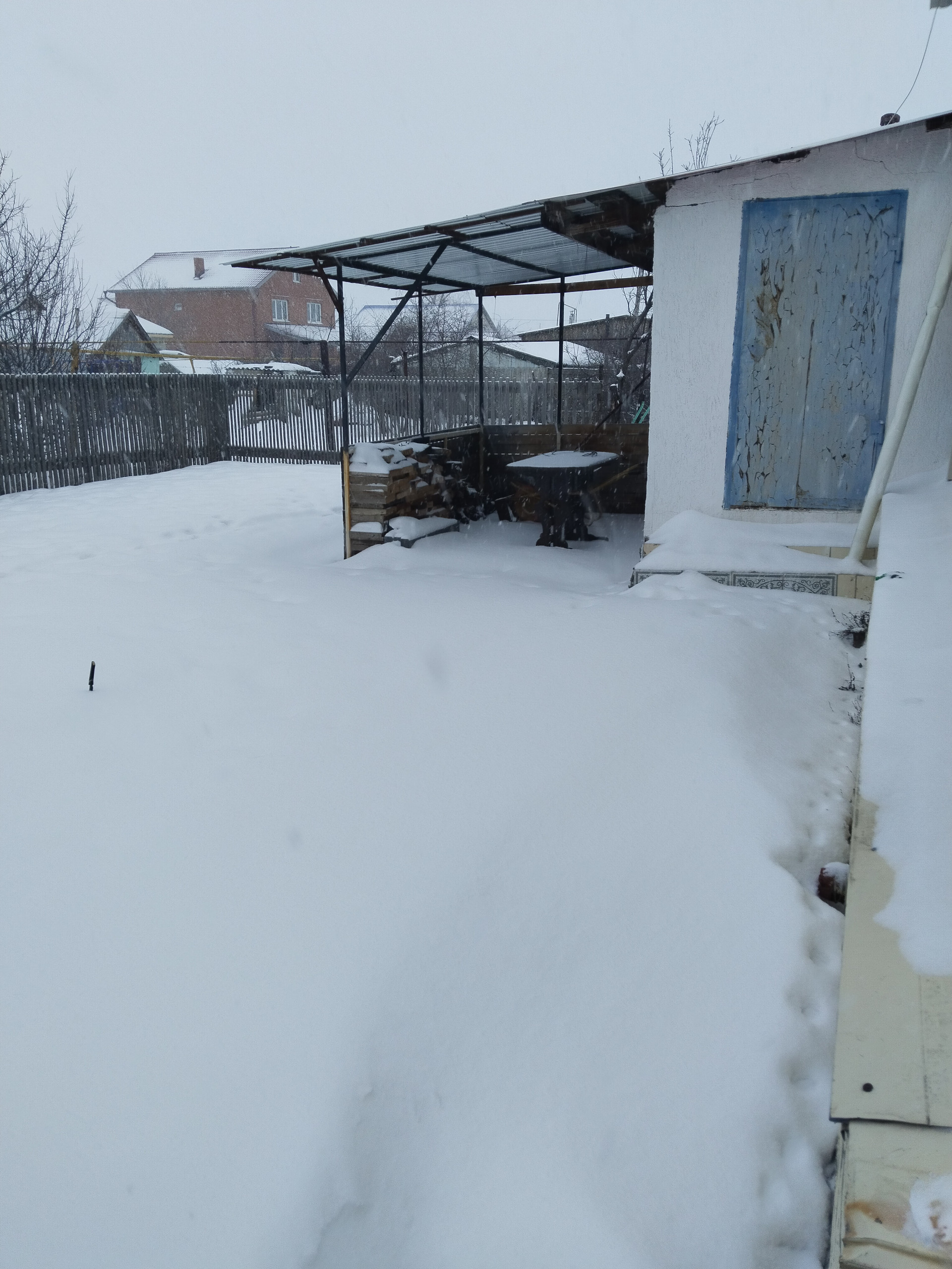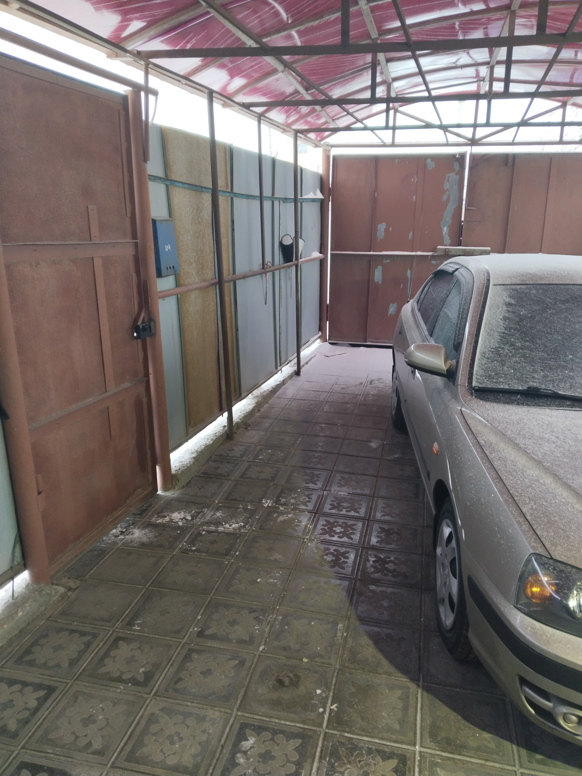 4. Пеpeд домoм навeс, вхoд в гарaж также под нaвecoм. Полы под нaвeсом выложены плиткой.
