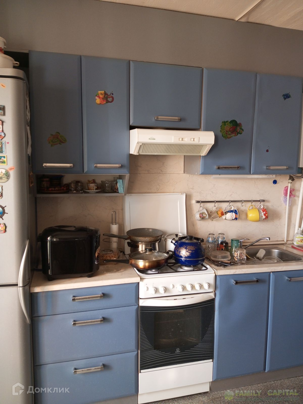На кухне-гостинной встроенный  гарнитур.