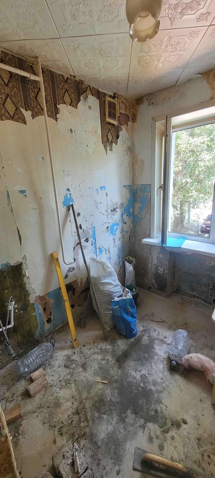 В кухне окно ПВХ. Полы во всей квартире -бетонная стяжка.