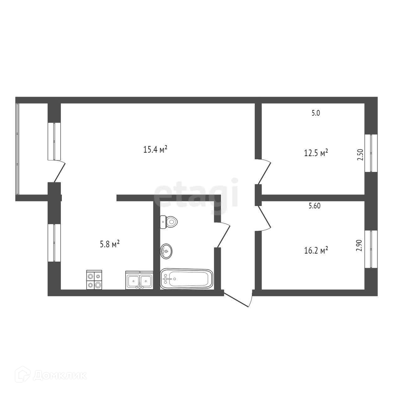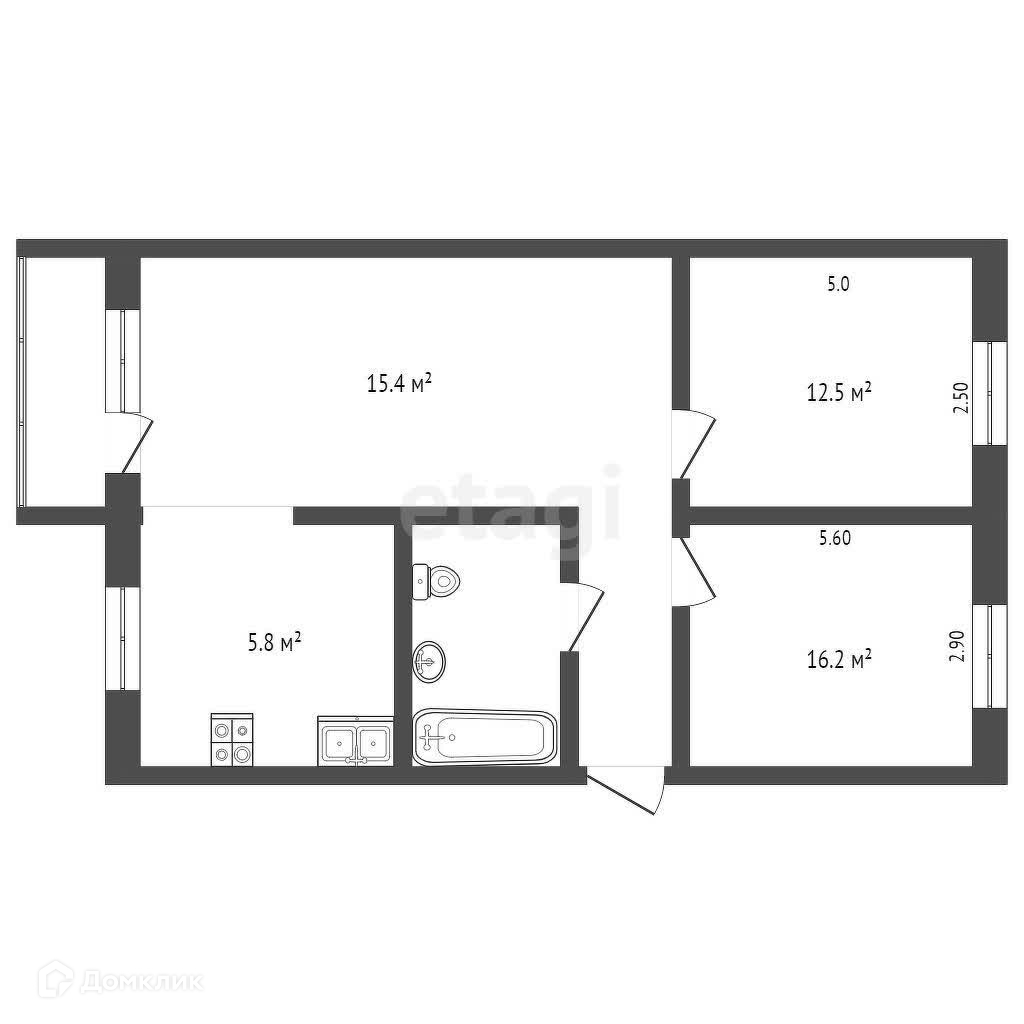 Общая площадь 60.5 м2
