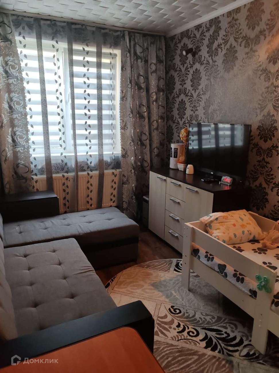 Двухкомнатная квартира, комнаты изолированные , окна ПВХ, косметический ремонт , остается кухня и кондиционер .