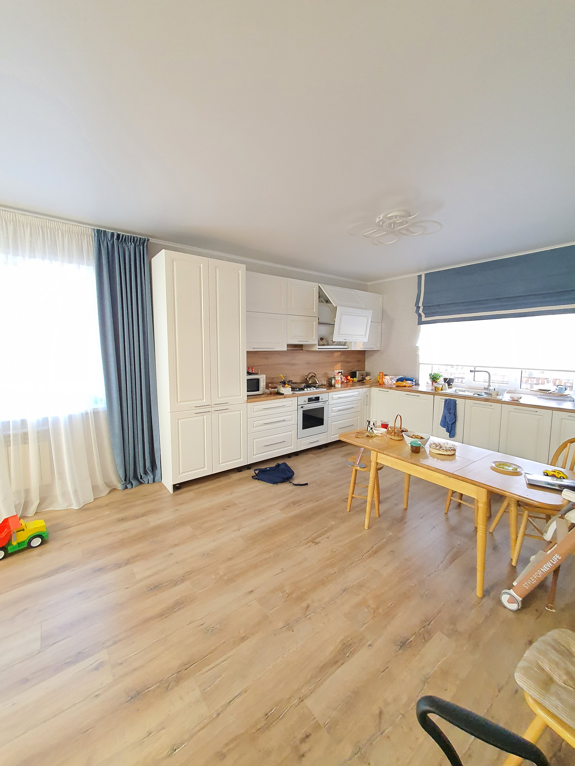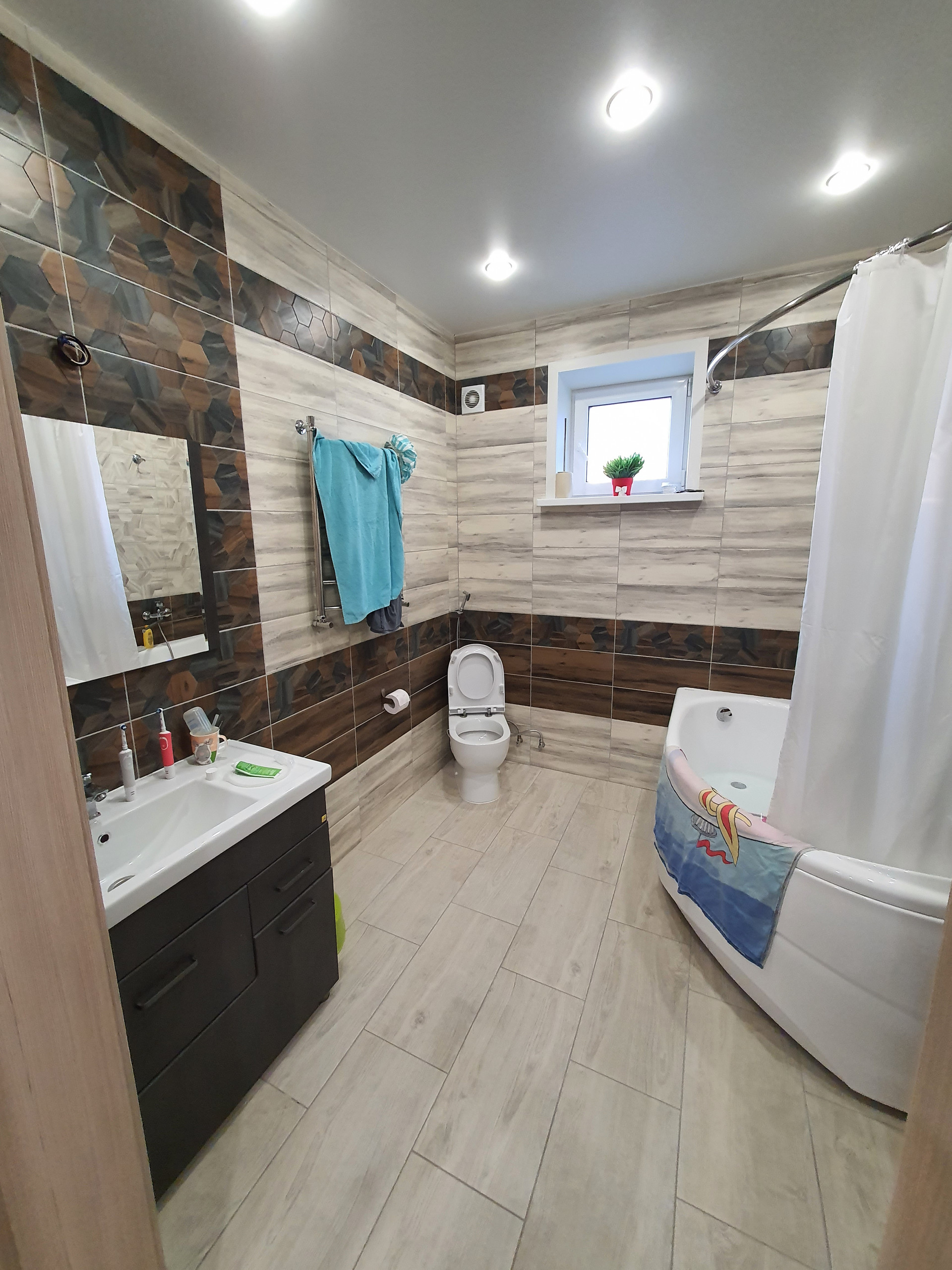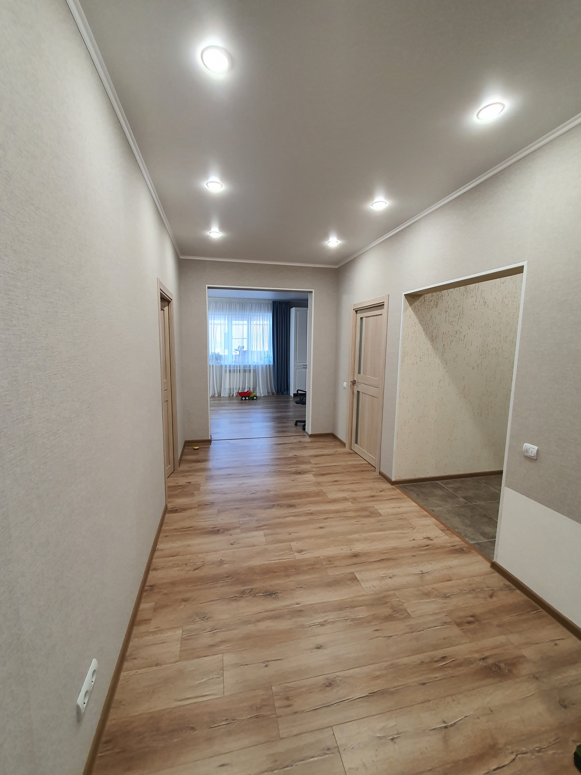 Отличное, жилое состояние. Встроенная мебель.  Натяжные потолки с точечными светильниками. Система - тёплый пол. Сан. узел - кафель. Новая сан.техника.