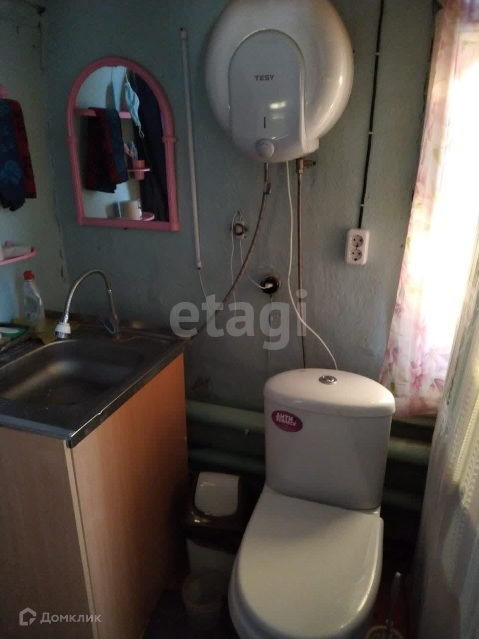 В доме 64 кв.м., две комнаты, кухня и летняя веранда. Заведена вода, есть санузел. Отопление печное.