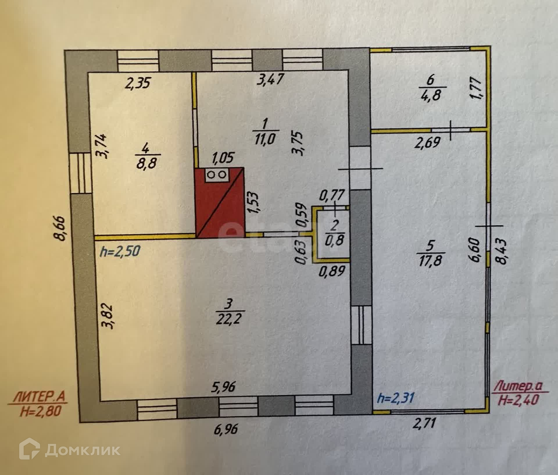 Общая площадь 65.4 м2