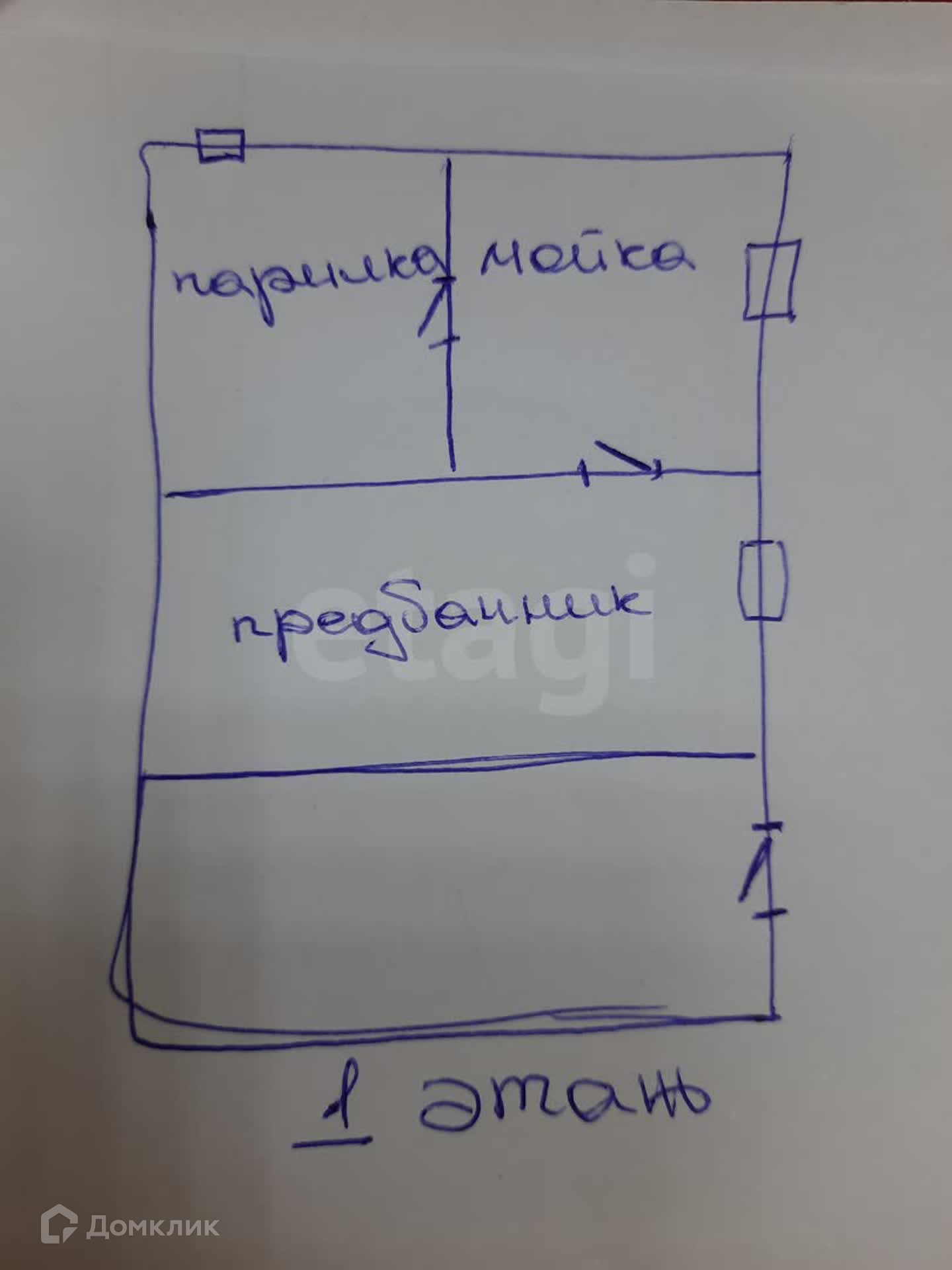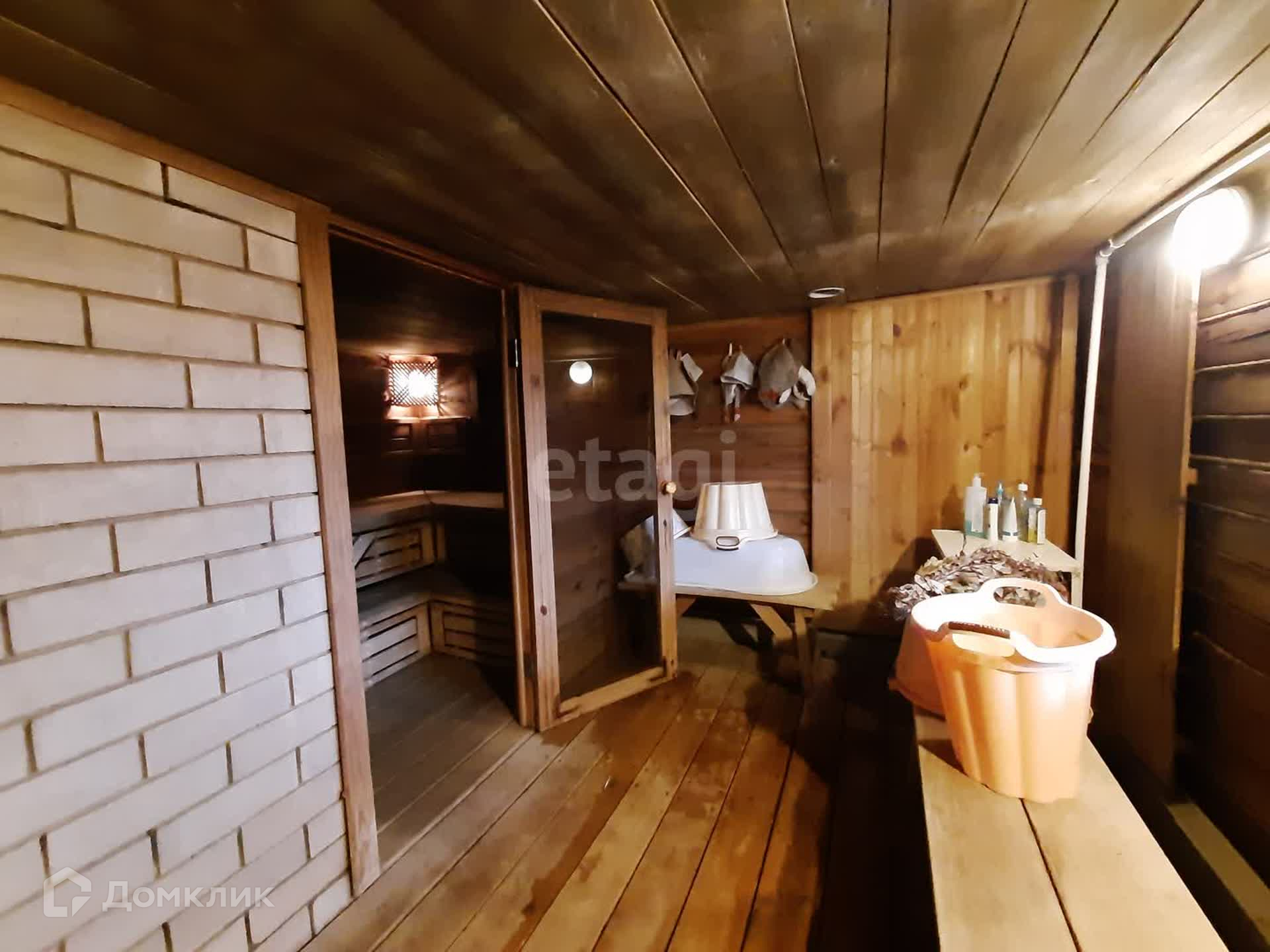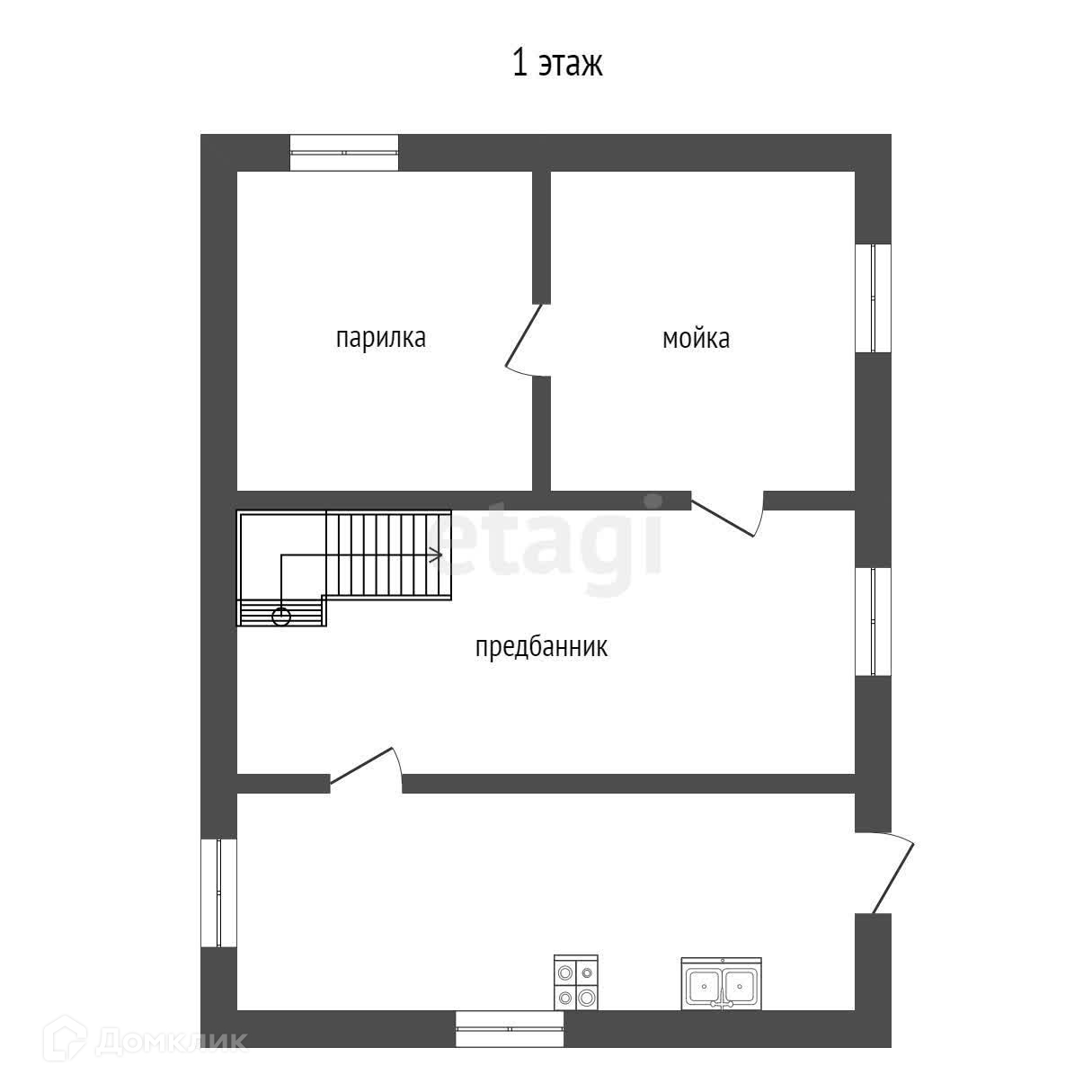 Первый этаж - баня с мойкой, парилкой и предбанником.