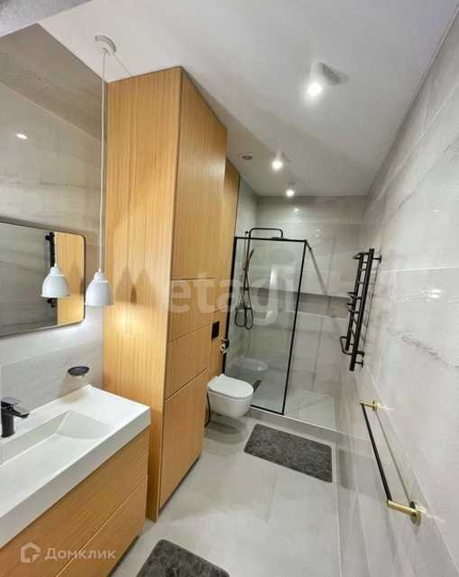 Есть тёплые полы, обогревающие 3 зоны: прихожая, ванная, кухня. Установлена принудительная система вентиляции. В гостиной био-камин с живым пламенем. Окна от застройщика заменены на трёхкамерные Rehau. Всё продумано до мелочей для максимального уюта и комфорта.