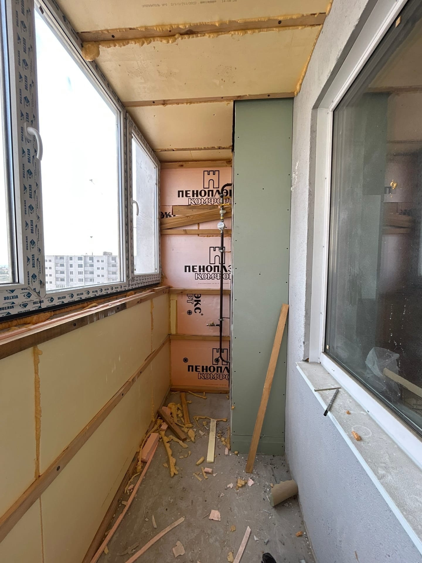 Квартира с черновой отделкой, утепленный балкон , перенесен газовый котел!
