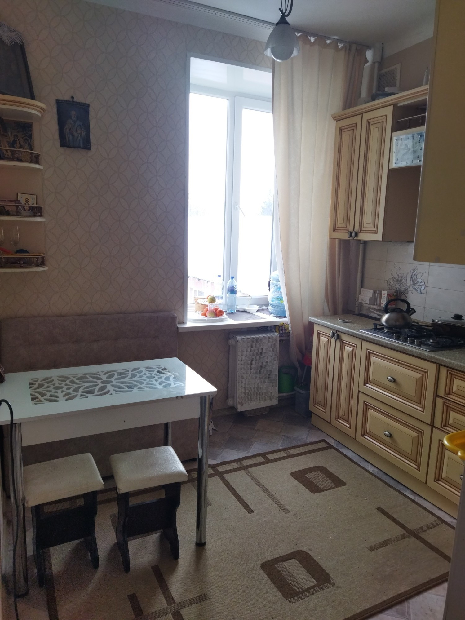 Дом выполнен из блоков, толстые стены, что является большим преимуществом спокойствия и тишины. Квартира теплая и светлая.