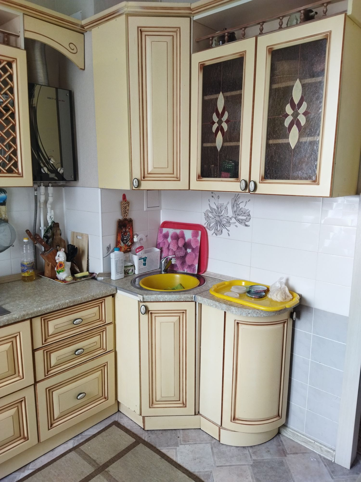 Также, в квартире остаётся встроенная кухня, прихожая, встроенный холодильник, шкаф под мойкой в санузле.