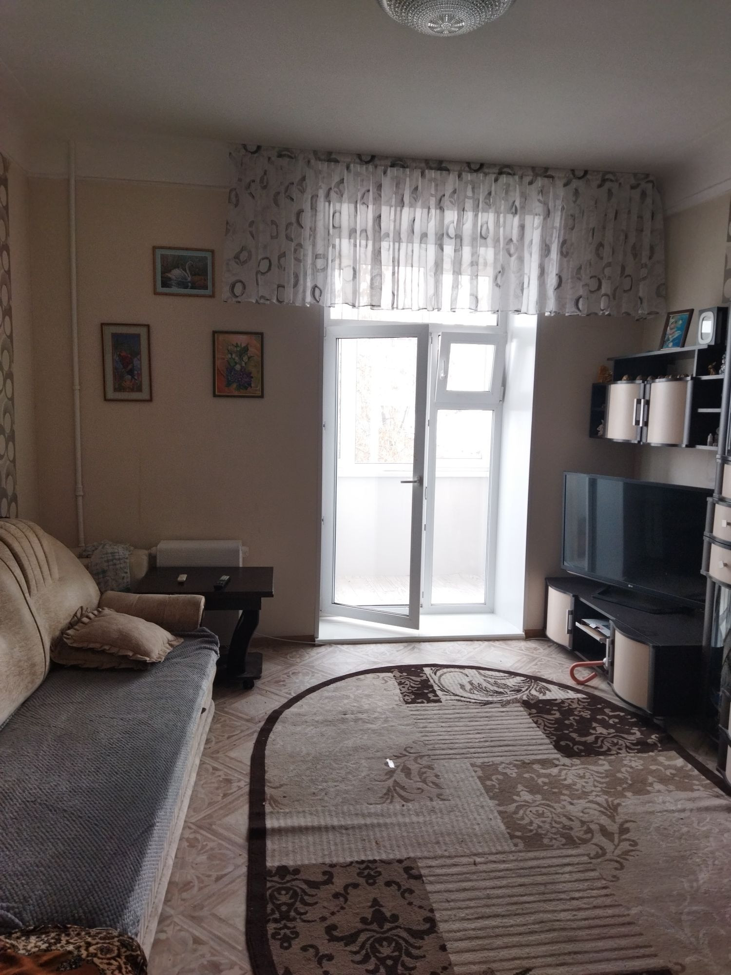 Евроокна, в зале панорамное евро окно с выходом на балкон (застеклен евро).