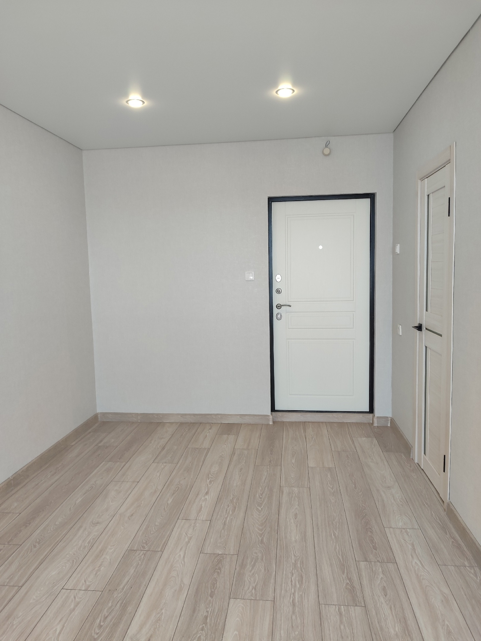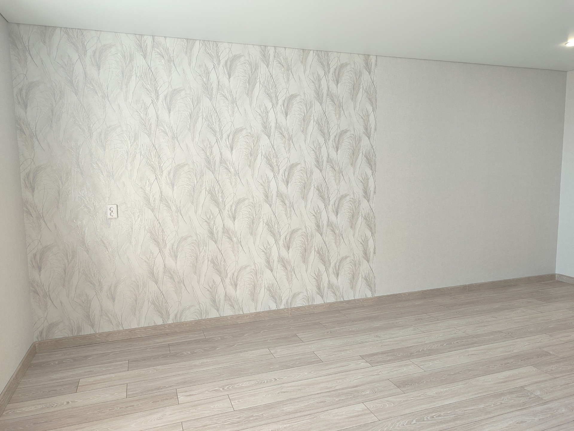 В квартире сделан качественный ремонт, в комнате ламинат, натяжные потолки, обои.