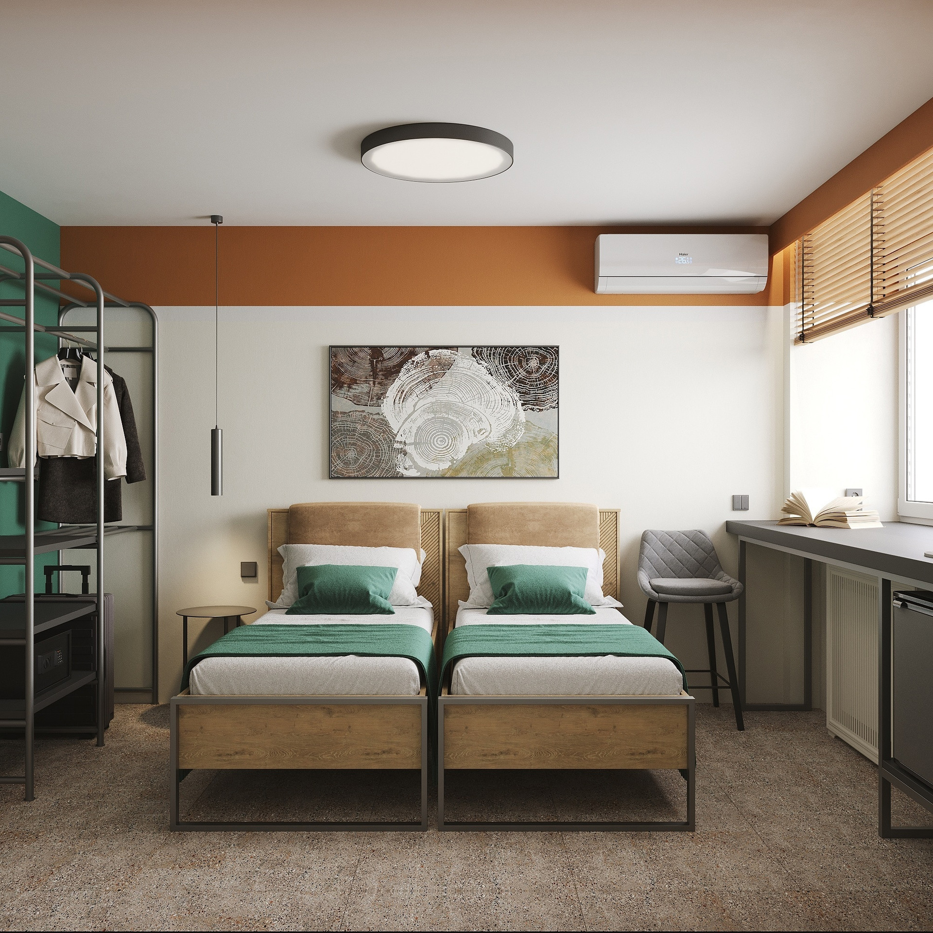Предлагаем вам апартаменты высокой категории, расположенные в самом сердце нашей базы, в корпусе № 9. Это уникальное пятиэтажное здание с интересным и современным дизайном замечательно вписано в окружающий лесной пейзаж, обрамленный вековыми соснами, в близи живописного озера "Еловое".  Наши номера предназначены для комфортного проживания, как для влюбленных, так и для молодых семей. В каждом небольшом номере площадью 17,5 кв.м продуманы все детали для вашего отдыха: имеется большая двуспальная кровать, места для хранения одежды, удобные стулья, туалетный столик с зеркалом, телевизор, электрочайник, холодильник и телефон для связи с рестораном и ресепшн. Кроме того, в каждом номере есть современная ванная комната, оборудованная всем необходимым сантехническим и бытовым оборудованием.